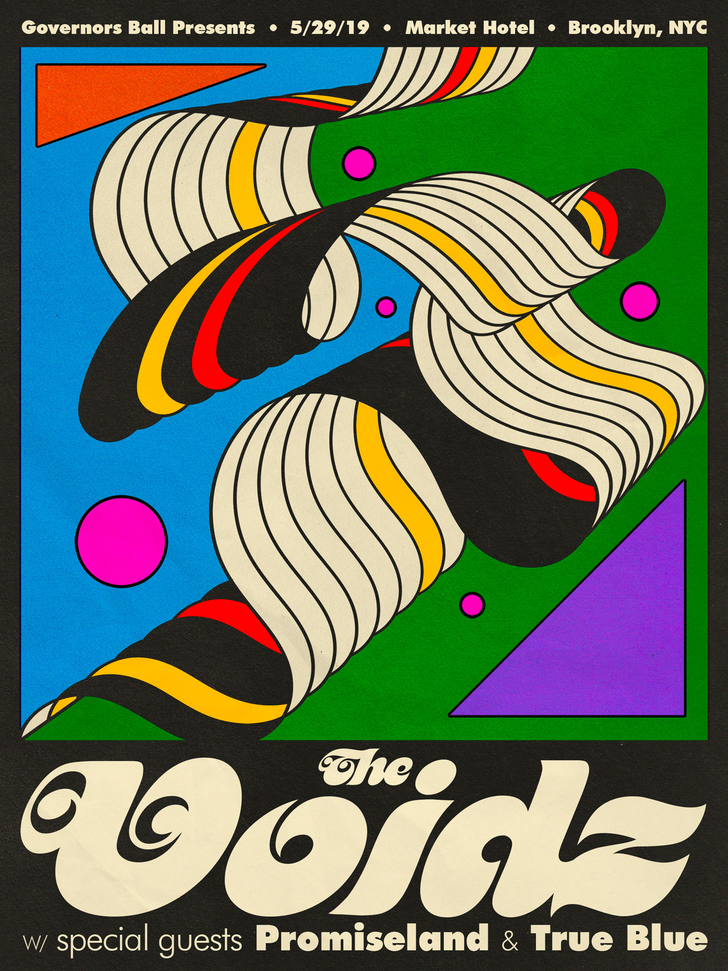 - When he started this poster for Tame Impala, Aaron swore he wouldn’t incorporate an orb because of its notable inclusion in Robert Beatty’s artwork for the band’s album Currents. Aaron realized he’d included four orbs when he finished the poster, but he loved the design anyway.