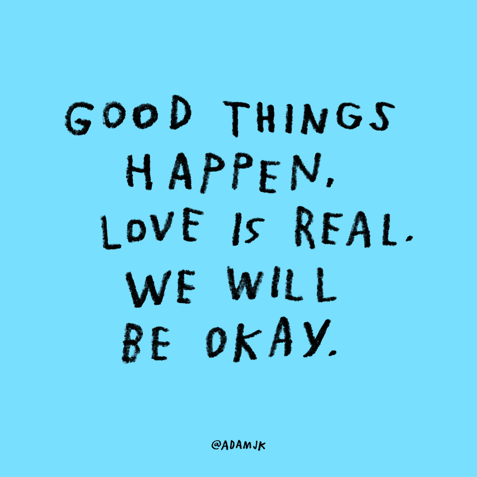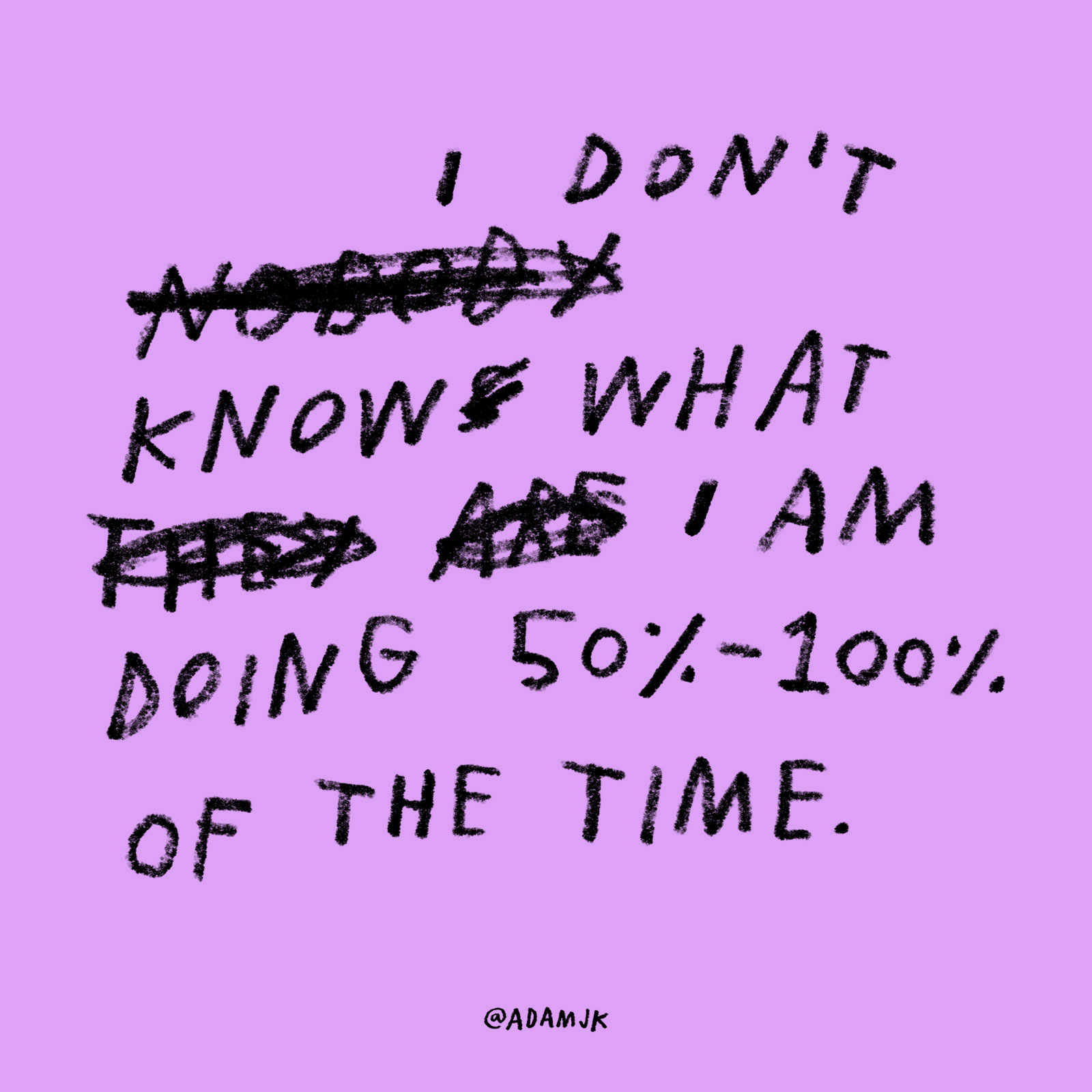 On Instagram (@adamjk), he posts quippy, inspirational one-liners, handwritten on brightly colored backgrounds. They often say just what you’ve been thinking, but would never have thought to write down. An evergreen sample: “The best ‘Monday Motivation’ is fucking Tuesday.”