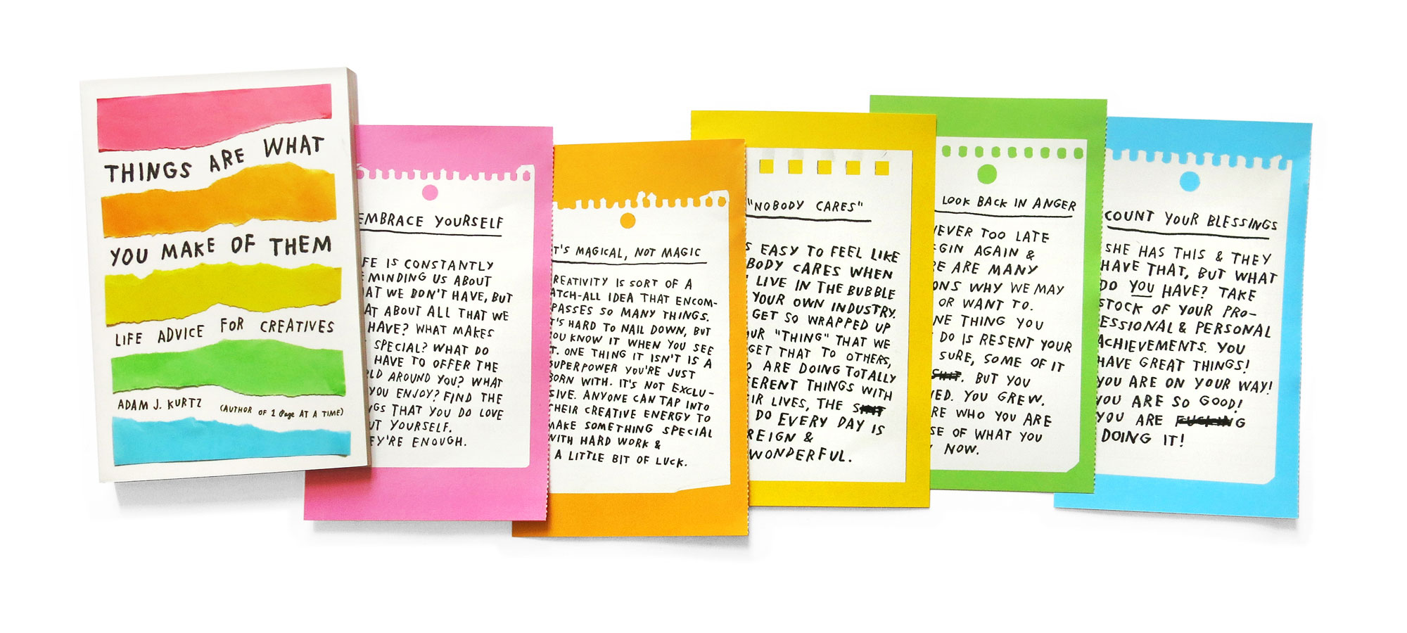 - Adam’s books include the daily creative companion 1 Page at a Time, the inspirational journal Pick Me Up and the weekly planner Unsolicited Advice. COURTESY OF ADAM J. KURTZ.