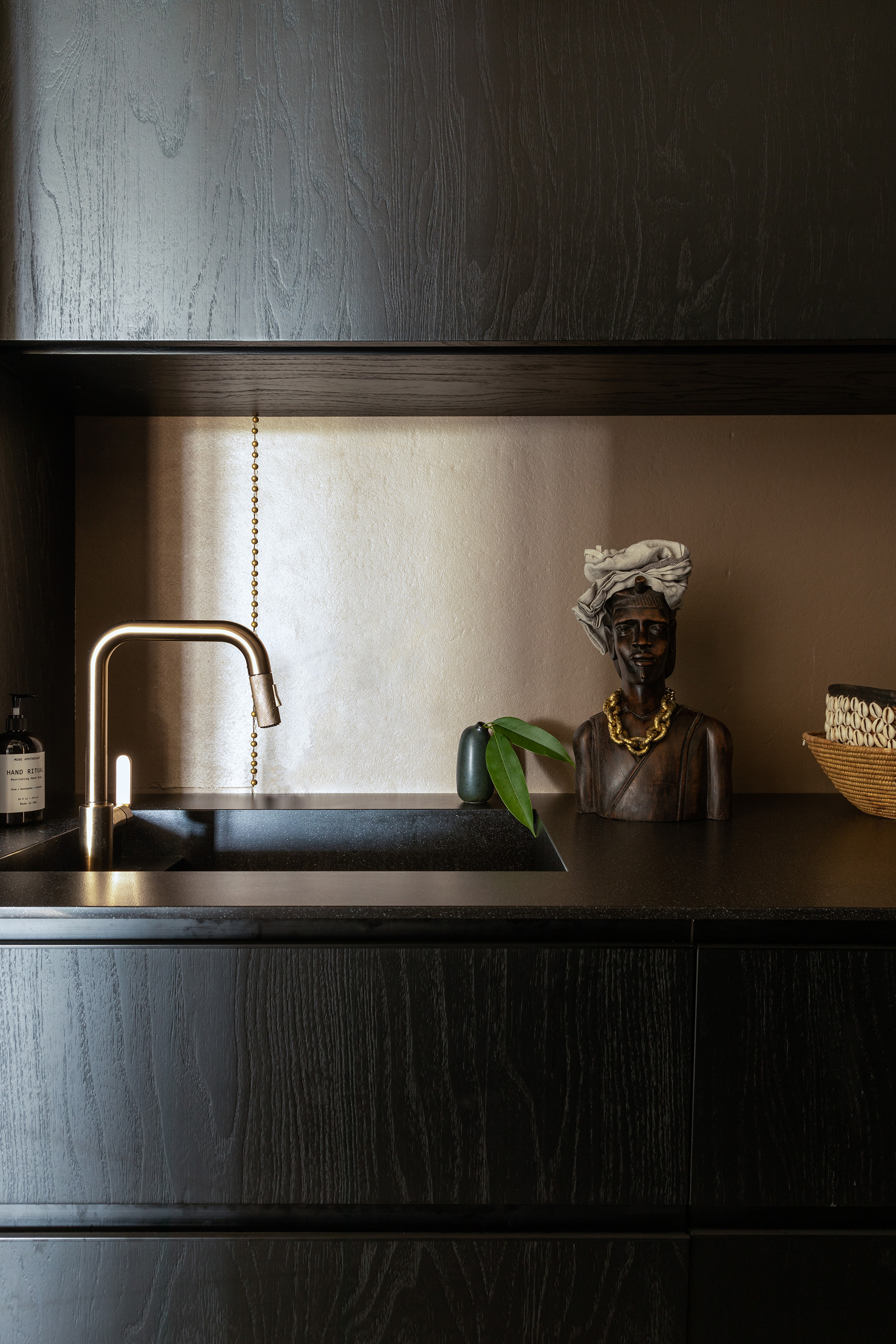 The kitchen features Bontempo cabinetry from Brazil, a Diresco Belgian Quartz sink, a Litze faucet from Brizo.