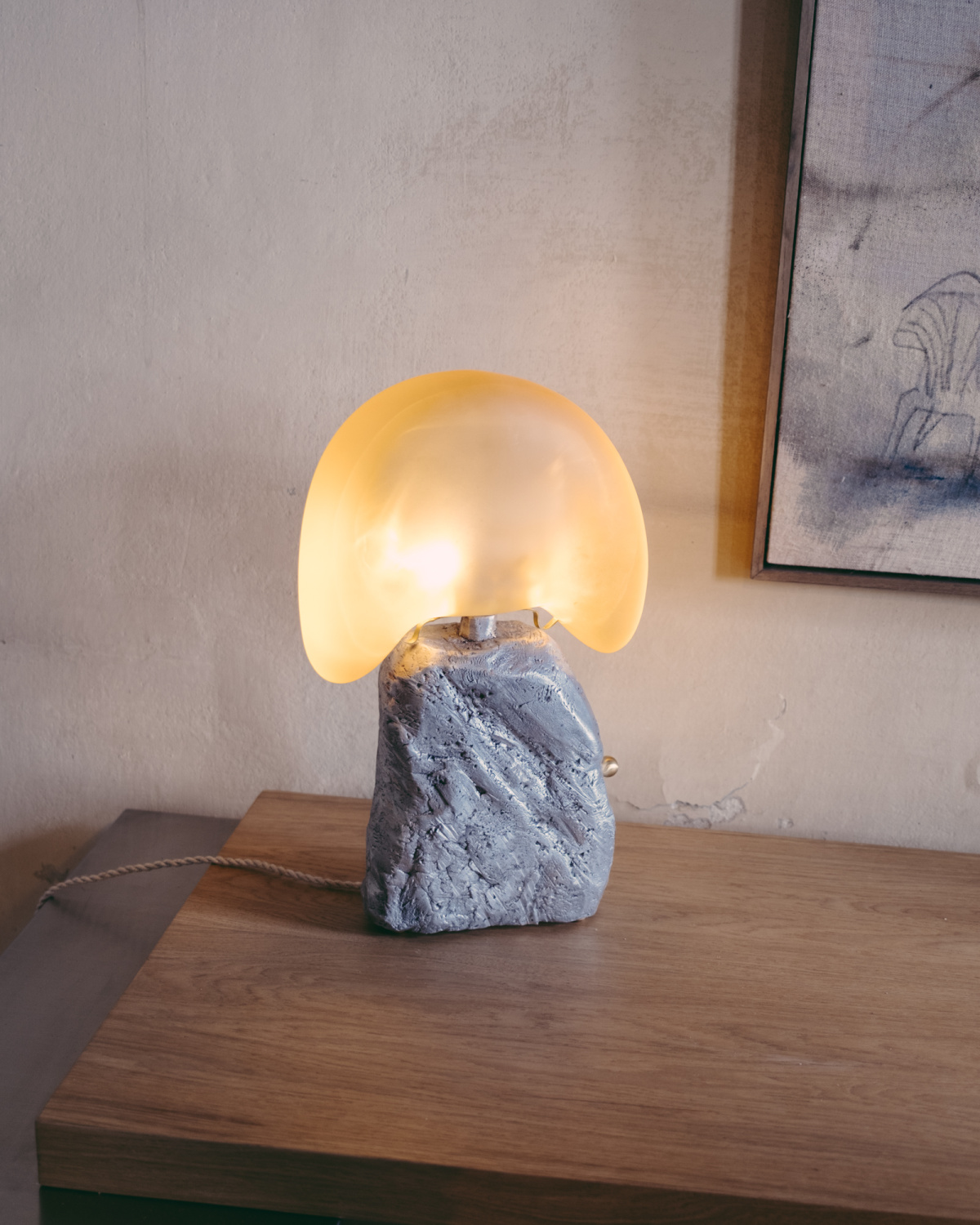 - Mush table lamp by Kilzi; “Inner” painting by Maria Yelletisch