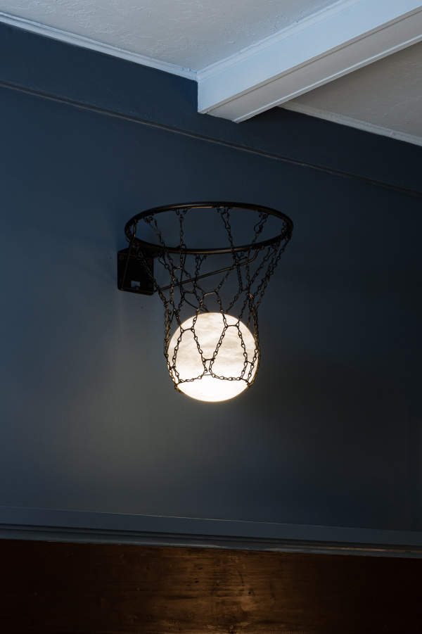 Franck Genser, a Paris based French designer born in Thionville, France, made “Basketball,” a bold wall sconce that turns a simple graphic arc into a sculptural light that feels like an architectural mark on the wall. The paint was created by Tonester Paints.
