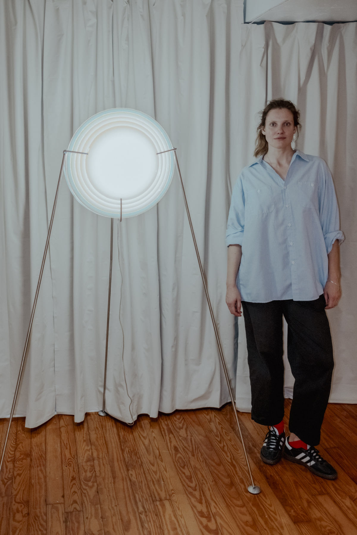 Dace Sūna, a Latvian designer based in Rīga, made “Sky Set,” a layered opalescent glass light built from stacked curved disks that shift from cool sky blue to warm sunset tones using the Rayleigh scattering effect. (I would love to live with this floor lamp!).