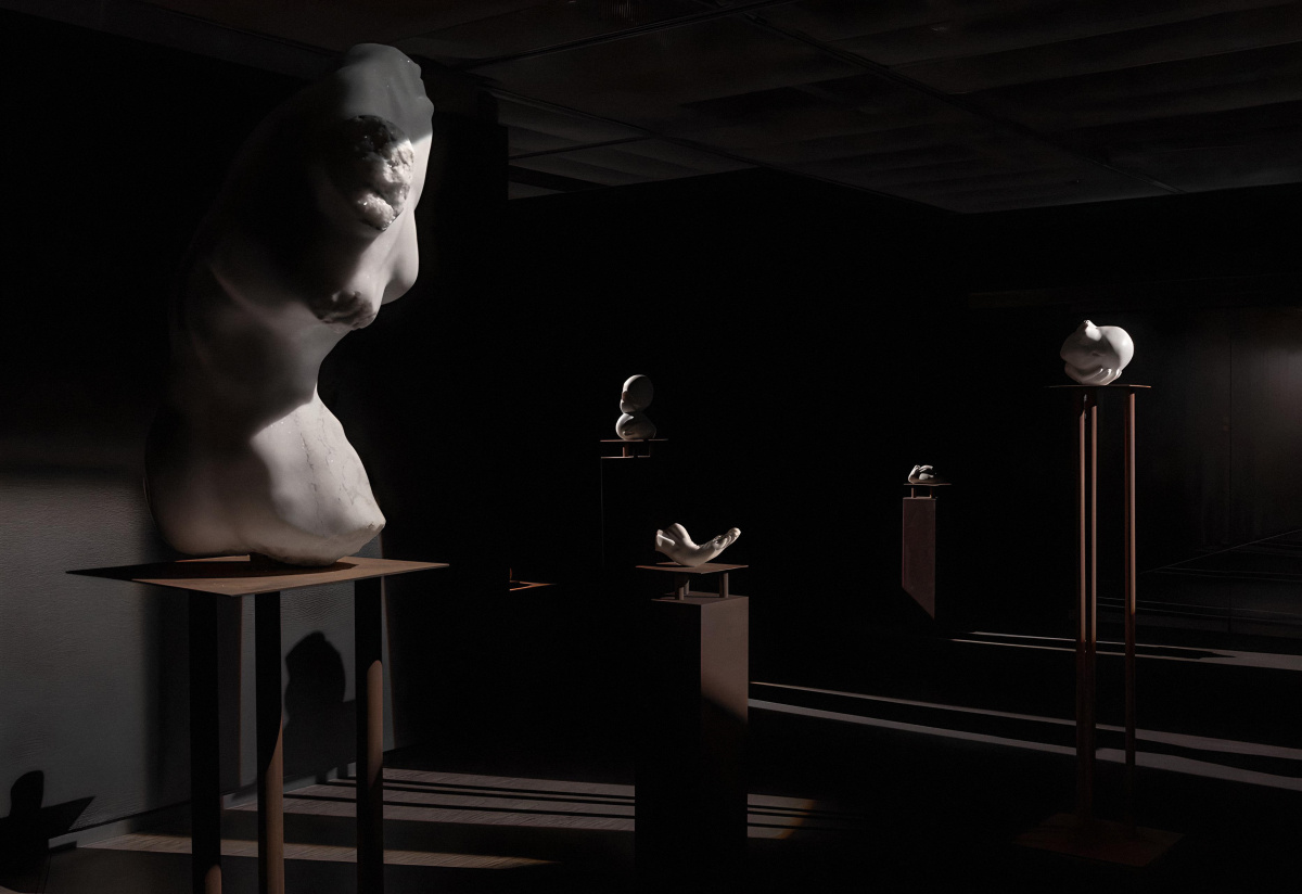 “In 2016 or 2017 I began exploring my Greek heritage. I eventually found a third-generation sculpture family in Meteora four hours north of Athens and spent years learning sculptural techniques from them.” Above: The “Purgatorum” exhibition at Fotografiska Museum, courtesy of the artist