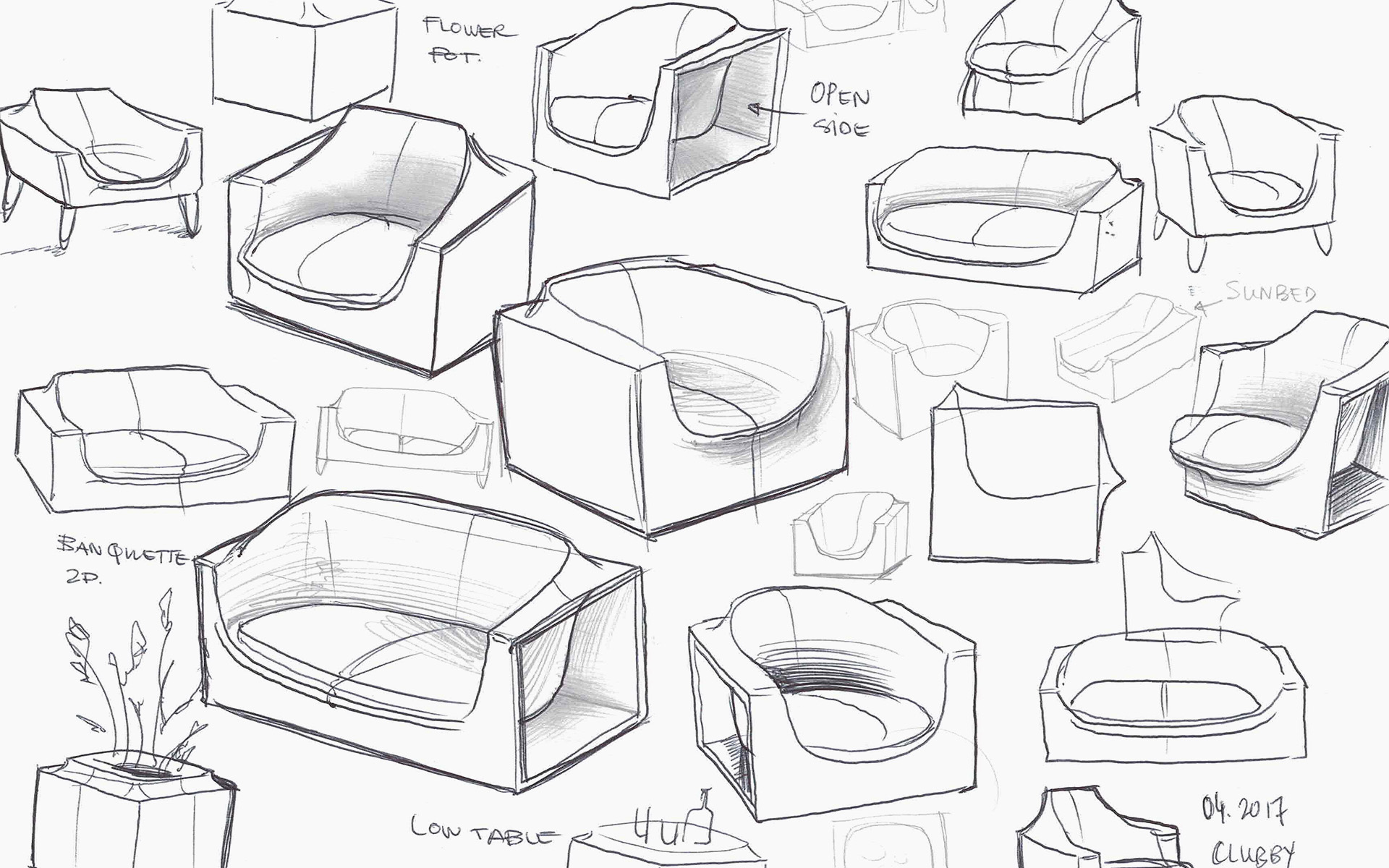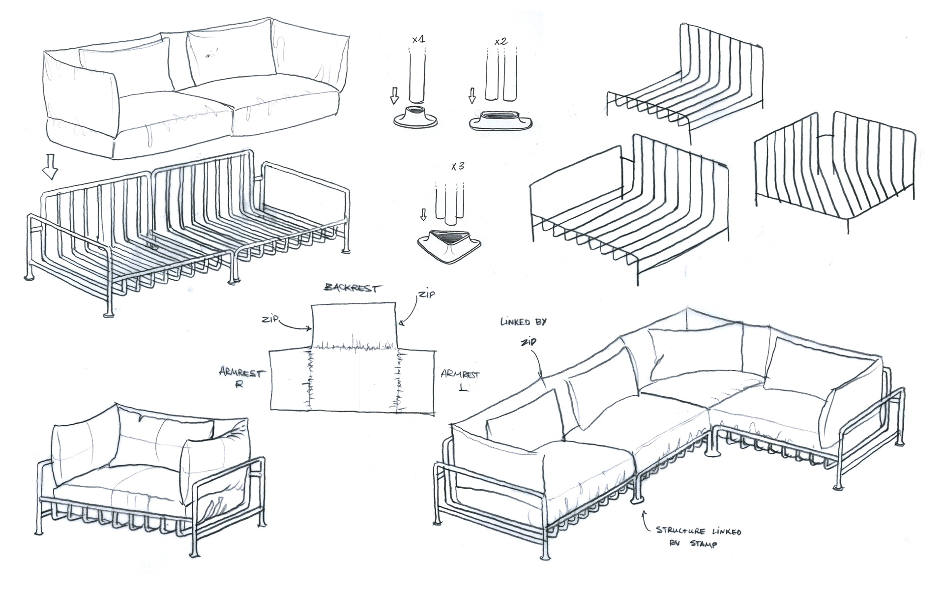 The modular Caddy Sofa System in the sketching stage. COURTESY OF ALEXANDRE TOUGUET.