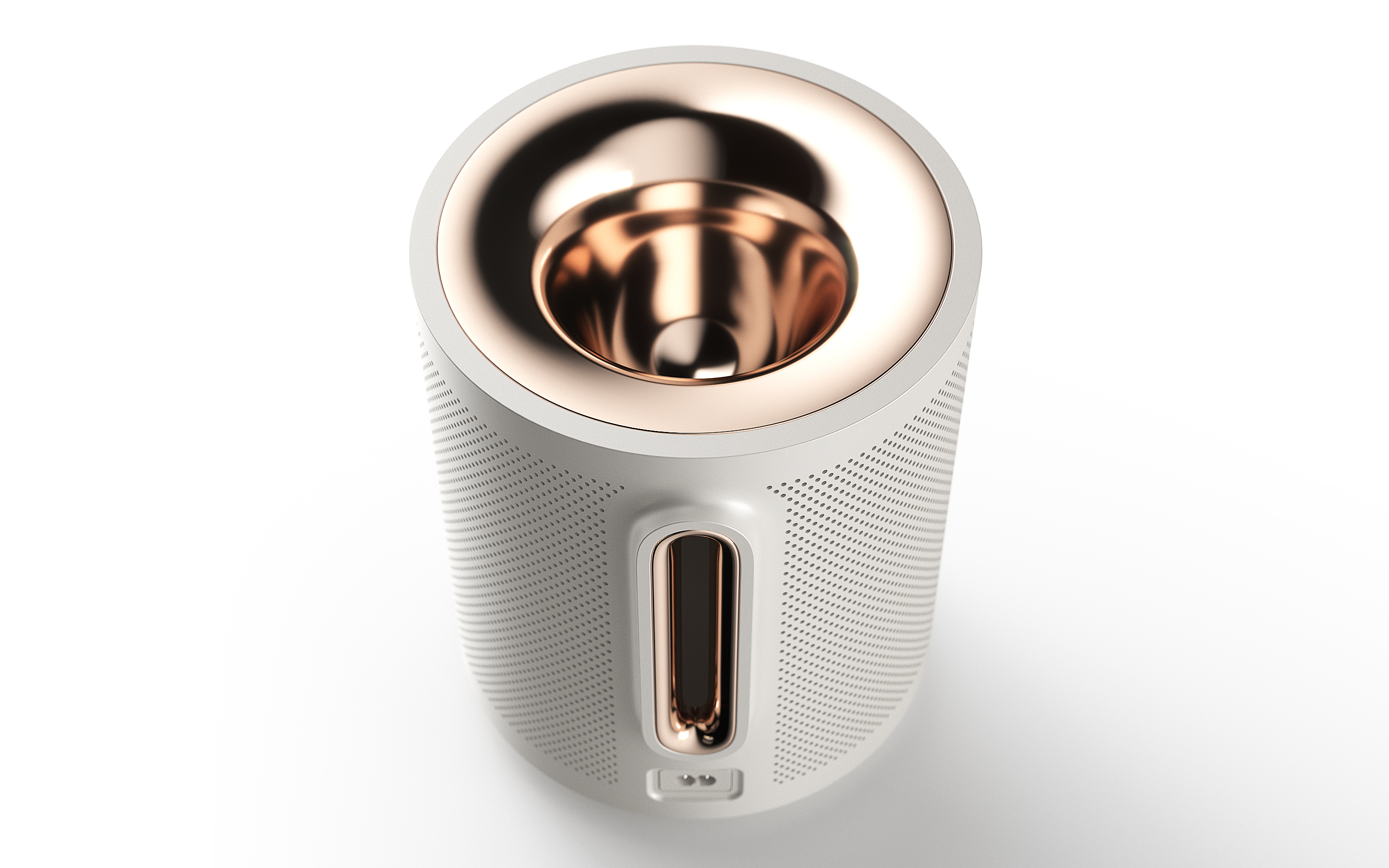 App-controlled wireless speaker—with golden insert and cup—skews minimal and sounds big. COURTESY OF ALEXANDRE TOUGUET.