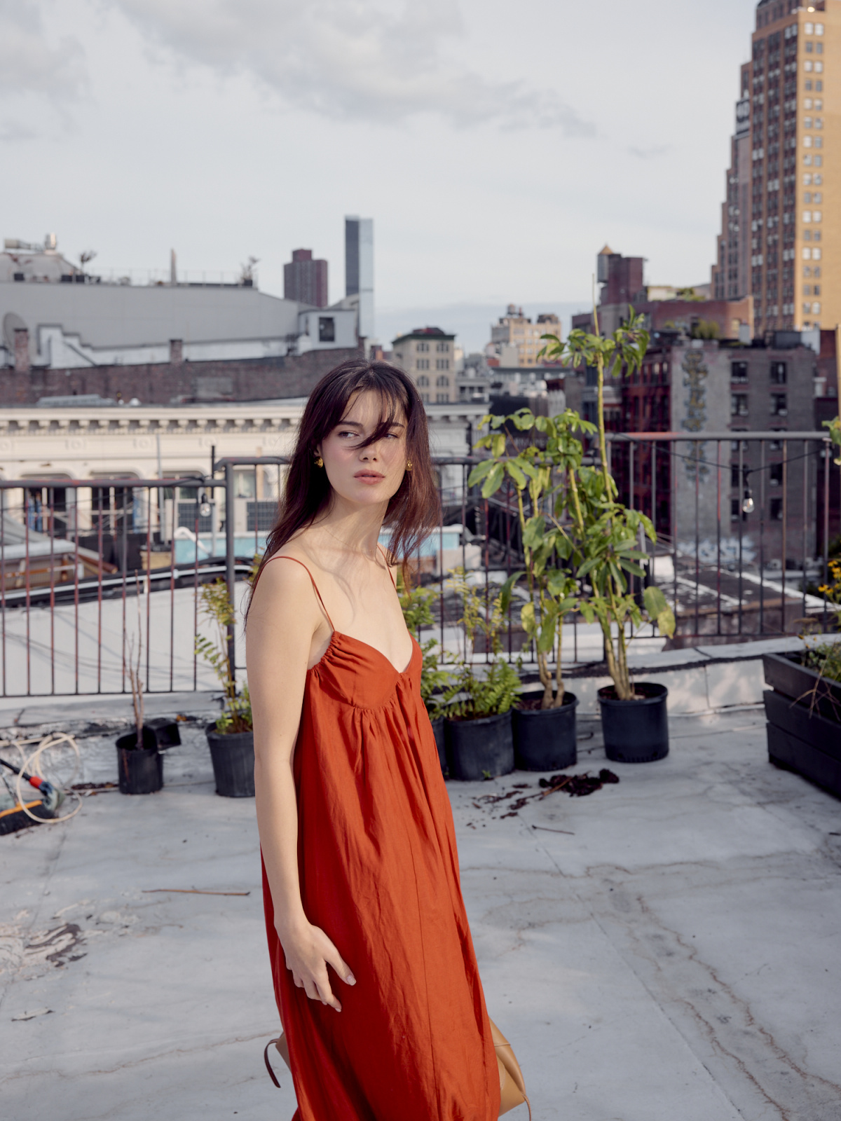 When I met Aly Kima on a classic Soho street, it was up five flights of stairs to a sunny apartment she shares with a Belgian model. Her apartment could easily double for a sitcom set, complete with high ceilings, minimalist furniture, the steady hum of a Nespresso machine, and a chihuahua that continuously bites at my ankles. Aly is thoughtful, stylish, and a little unsure about her new bangs.