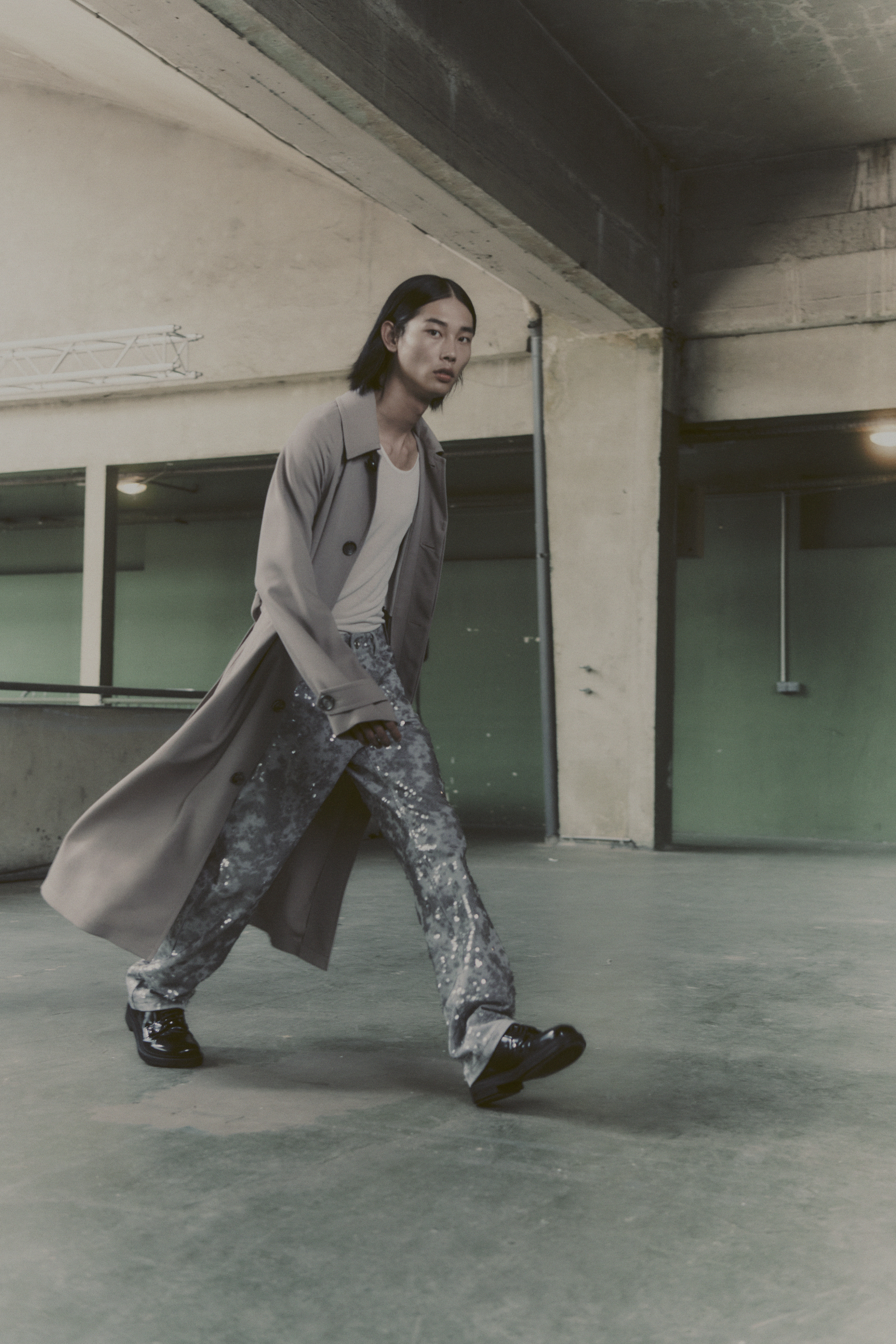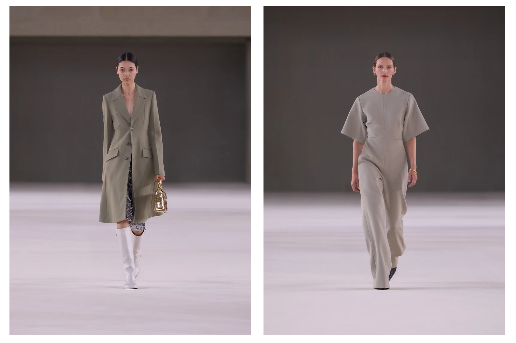 - Pea green adds color to the muted collection. Photo by Filippo Fior / Gorunway.com