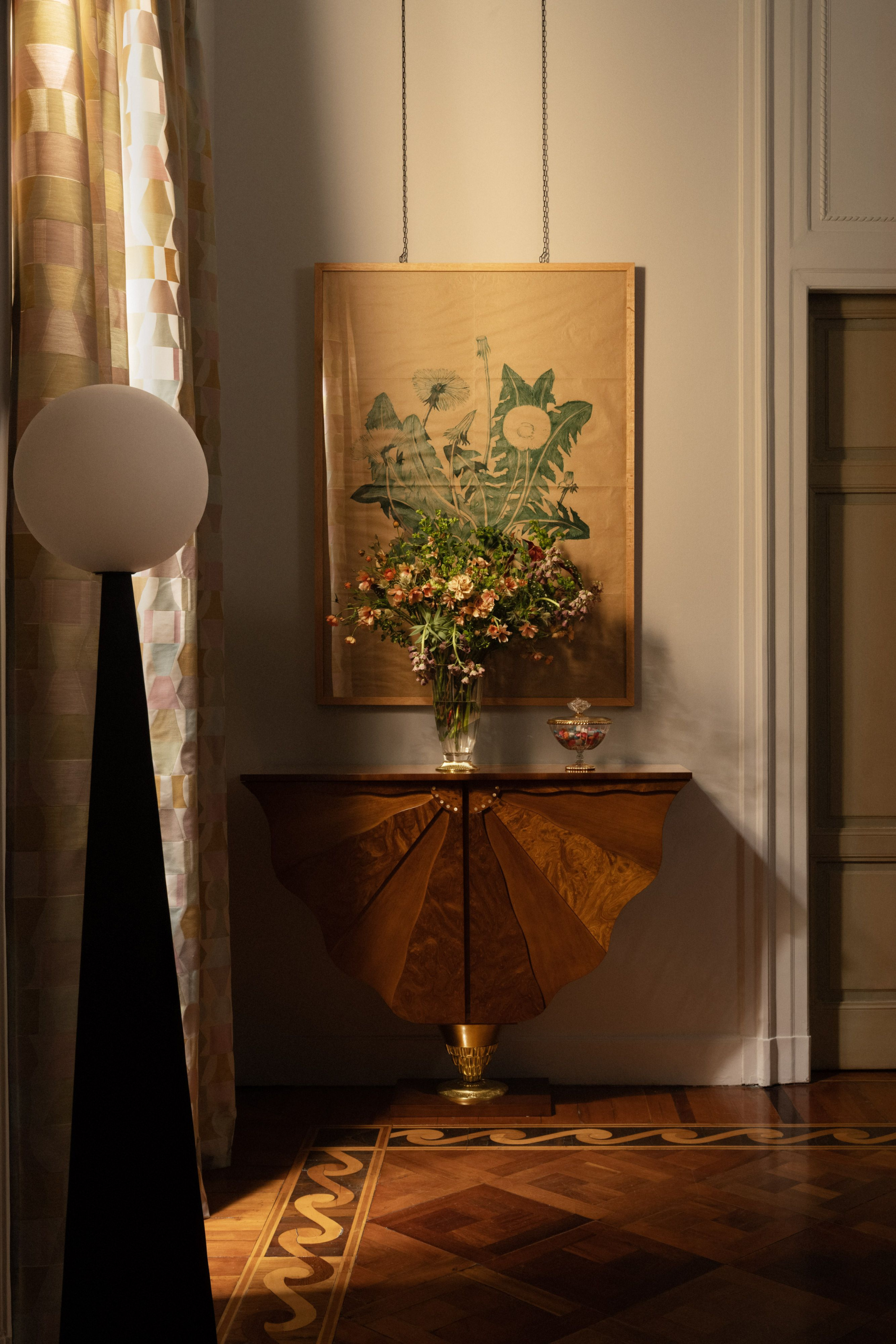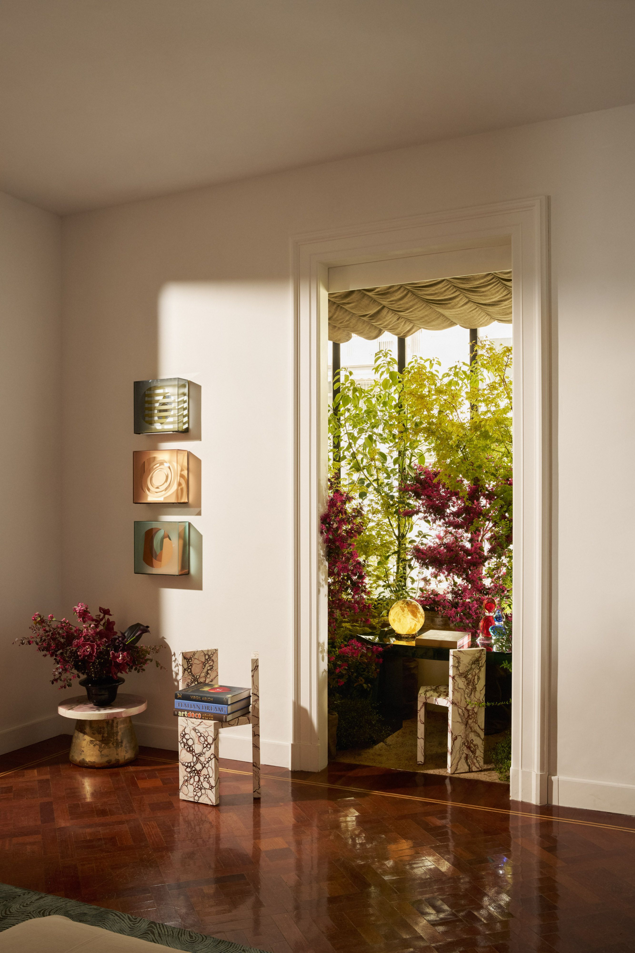 “I’ve always been drawn to the quiet strength of mid-century design: its sculptural forms, clean lines and sense of restraint. In this room the classical bones, arched niches, and ornate moldings already carried weight.” Rather than mirror them, Nebras introduced pieces that contrast and complement, allowing both styles to hold their own.