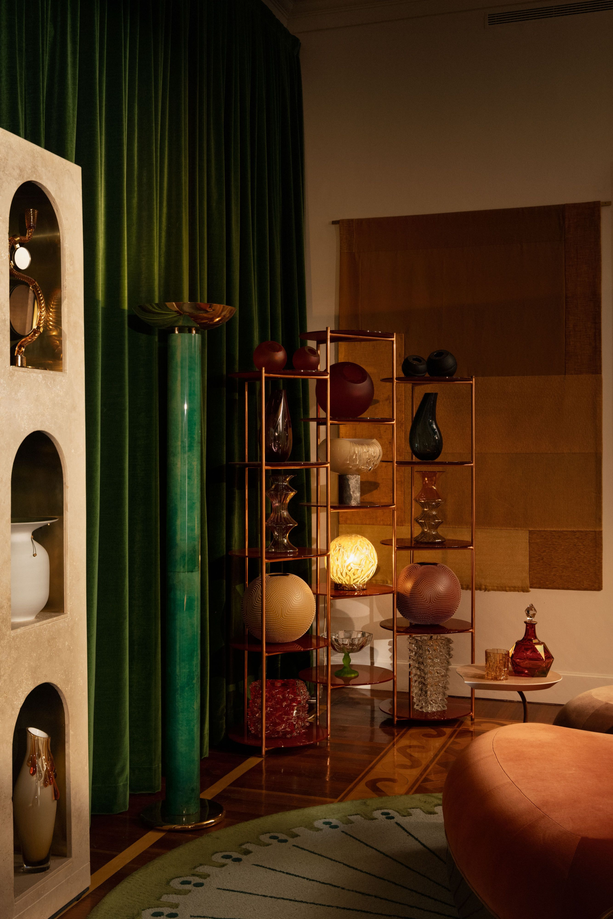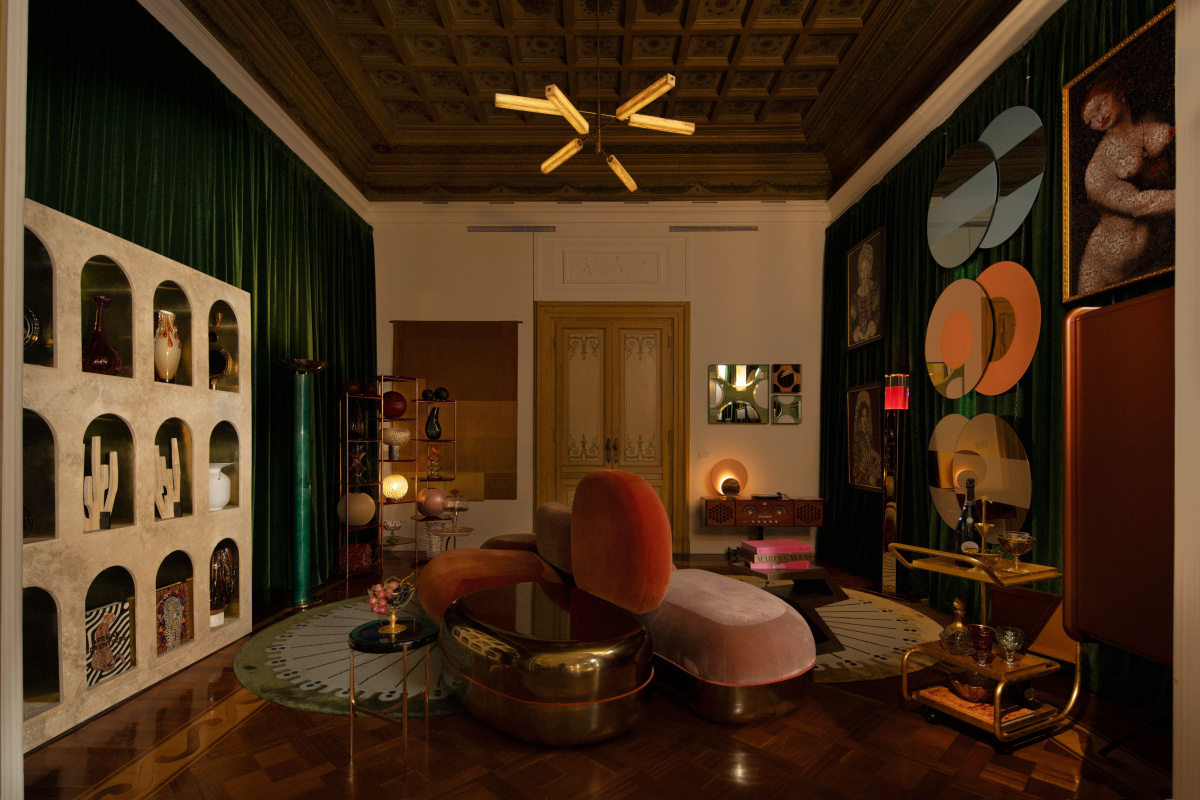 “In the opulent setting of the L’Appartamento palazzo, we made these spaces into their own kind of party,” says Alexandra Champalimaud, founder and president. “We envisioned a seductive gathering place to pour drinks before and after the crowds, and an intimate haven for quiet and enchanting moments, all in celebration of La Dolce Vita.”