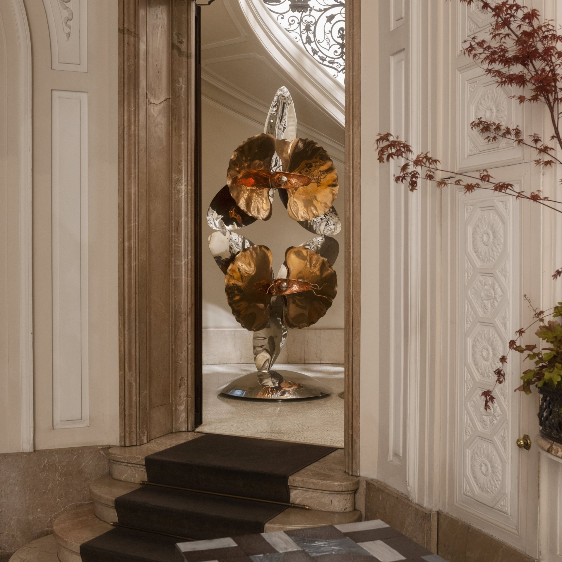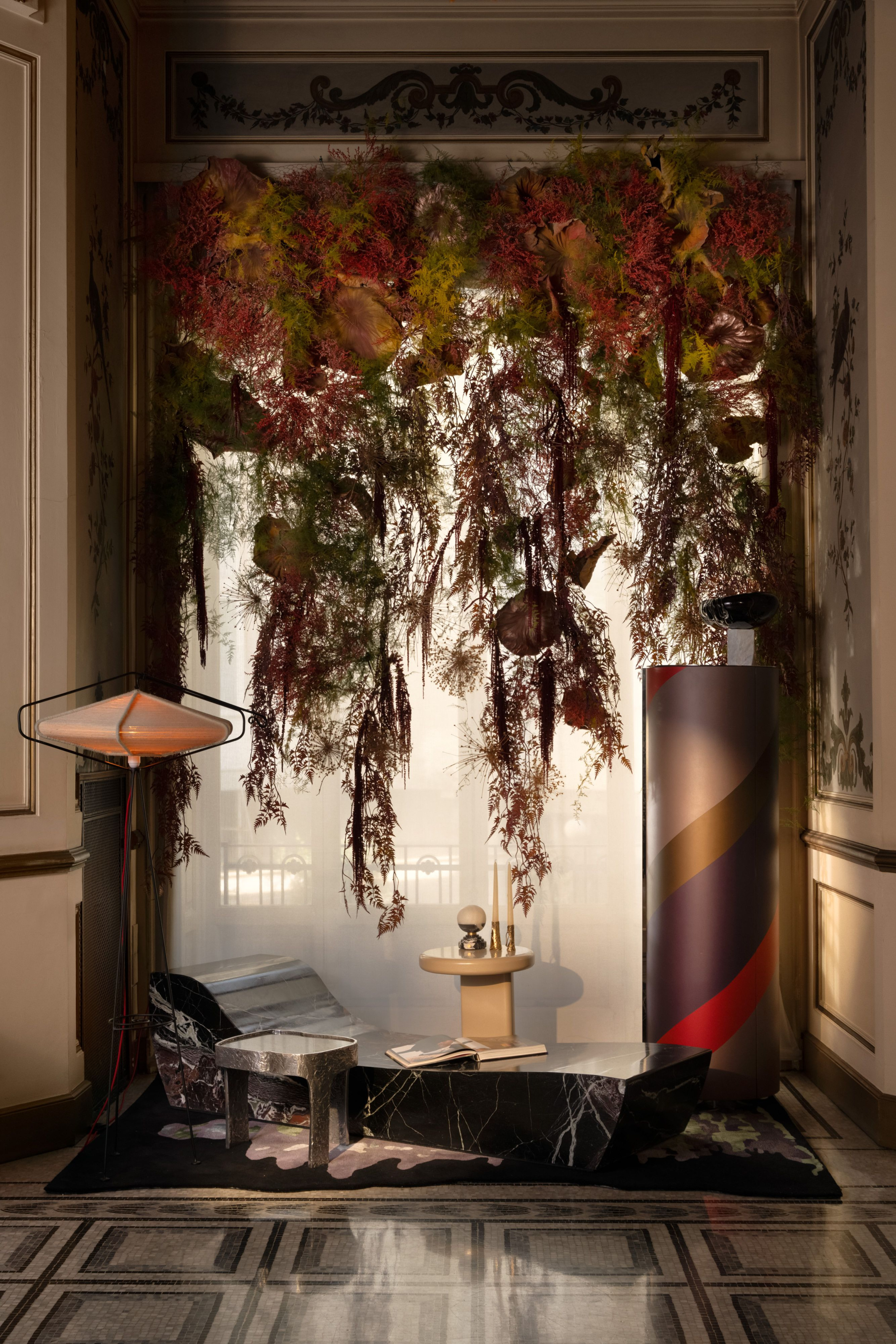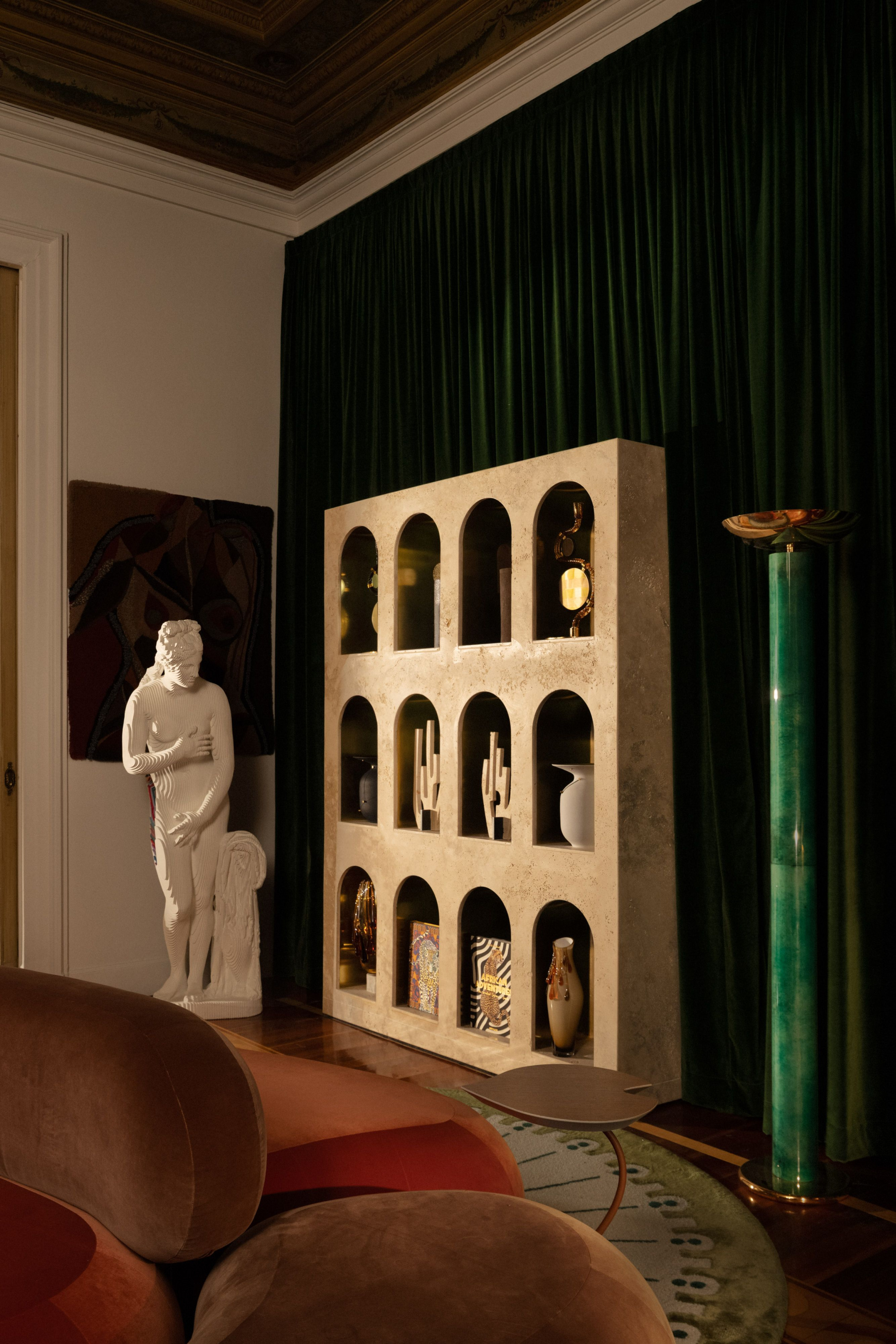 “The history of the palazzo initially captured our imagination,” they say. “It was originally built as a residence for a prince who fell in love with a Milanese woman. That romantic narrative became the foundation for our exploration of how a classical palazzo interior could be reimagined. We wanted to create a space that seduces the senses like a Siren’s song—layered, immersive, and slightly surreal.”