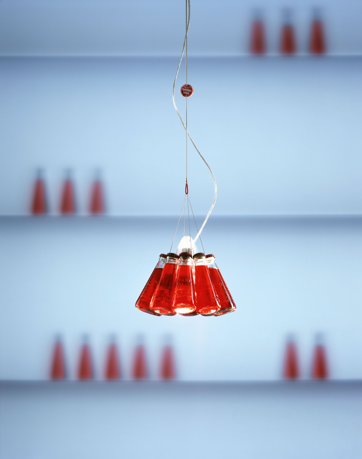 - The Campari Light is made from ten original Campari soda bottles that are individually removable. Photo courtesy of Ingo Maurer