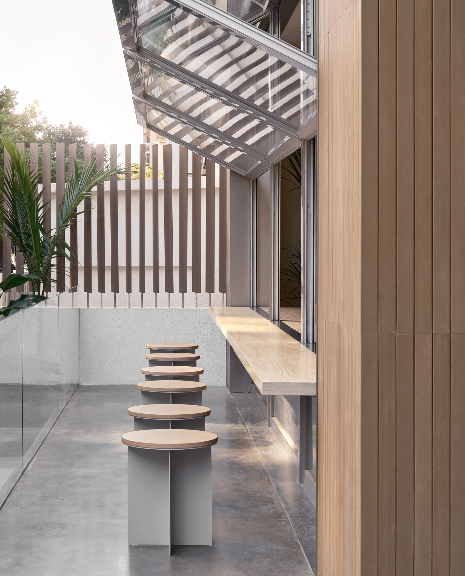 The architects considered the holistic experience in the tea lounge, starting with the textures of the materials. Like the aromas of tea, the store is made of vibrant and natural materials.