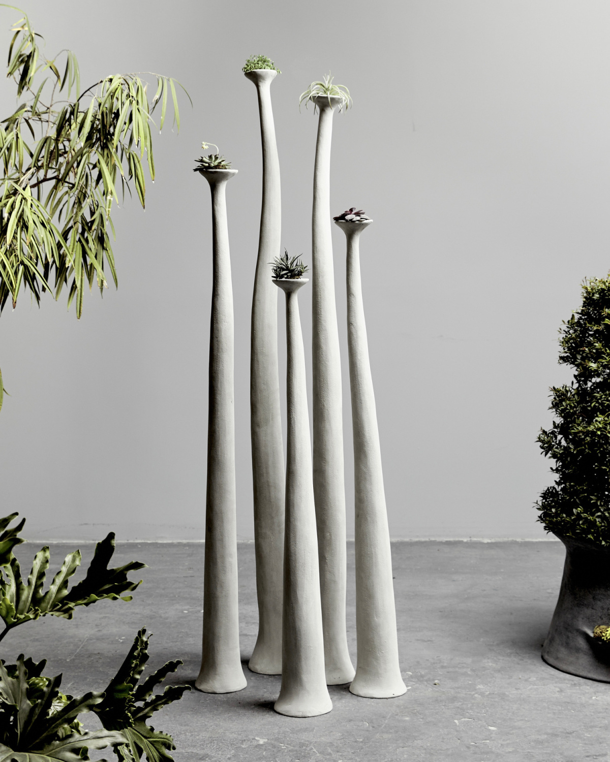 - The studio integrates nature into each of their designs, incorporating live greenery and organic shapes into bespoke furniture, planters, and sculpture. Photo courtesy of Opiary