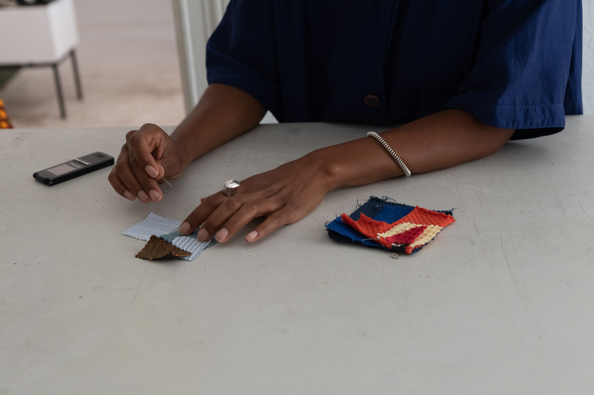Buki’s work blends the shape of a man’s boubou into the language of contemporary high-end women’s fashion. “It’s a protest in a way. It’s nice to shift between genders.” Buki’s clothing is handmade in Berlin, large with a French seam. “You can turn my pieces inside out and they look really nice from the inside. It takes more time, but it’s longer-lasting.” She considers her work part of the slow fashion movement that raises awareness around the resources required to make clothing.