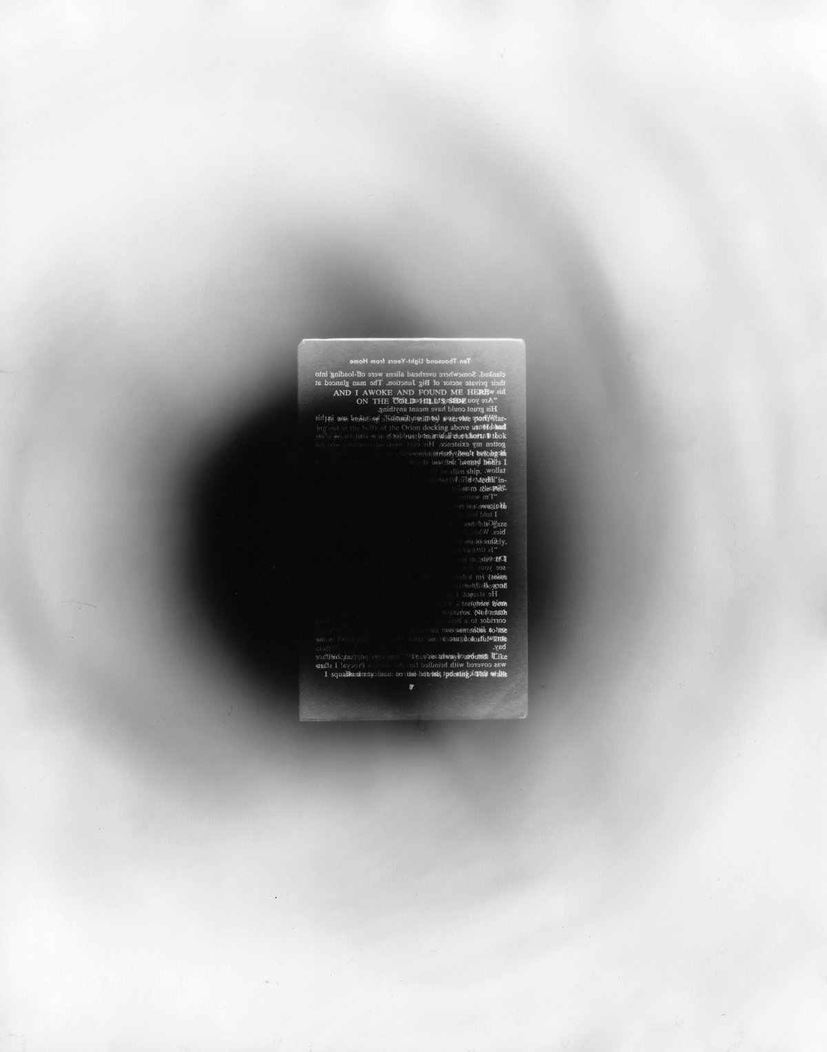 For my Solaris works I used a Fotar horizontal enlarger from the 1950s. It’s gigantic and operates on motorized tracks on the floor. This equipment creates large silver gelatin prints by projecting images onto a wall rather than a table or floor. As far as we know only three of these enlargers remain in working order. When I saw what the equipment could do I immediately thought, “I want to take small negatives and make enormous prints from them.” I really looked at every grain of silver that comprises an image—like individual letters that construct a word.
