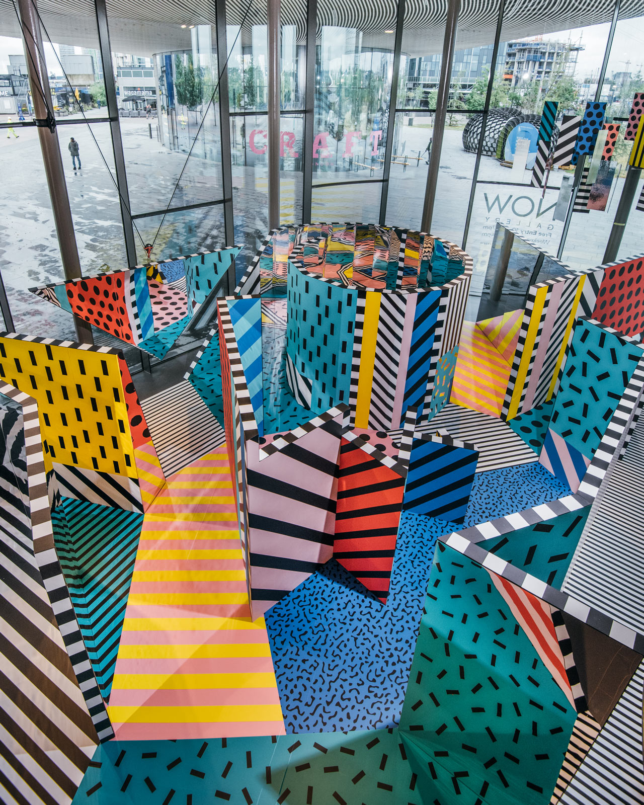 “We love having colour in our gallery space; it glows through the glass and resonates on Peninsula Square. Camille Walala is the queen of colour, and her patterns will create another world for all in NOW Gallery,” says Jemima Burrill, curator of NOW Gallery. “We are creating a playful place where – as is in our past exhibitions – we give people time to linger, digest, and unpick puzzles giving space to let the installation resonate.”