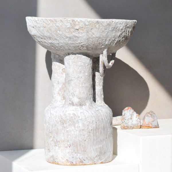 A passion for 20th century modern design led Natasha Dakhli to develop her artistic identity through ceramics. Spanning furniture, lighting, decorative and functional objects, her creations explore the aesthetics of the ’50s and ’70s—particularly architecture. Vertical rhythms and unstable balances of movements link nature and space in volumes like the Gypse Table.