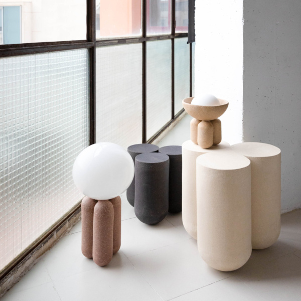 The stoneware Moor collection by Lisa Allegra includes tables, lights, planters, vases, and a shelf, all playing with themes of balance and contrast in forms grounded by a trio of rounded cylinders. Lisa lives in Barcelona, where she also handcrafts each piece of masterful ceramic furniture in her studio, Ceramic LAB. The studio doubles as a coworking space for other ceramicists and those looking to learn the medium.