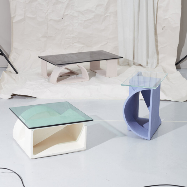 Made for the “Sisters” exhibition in Barcelona, Common Effort is inspired by fellowship, and the community around creativity. Sprouting from the core of female friendship, the design came about as designer Sanna Völker invited her friends Lotta, Elin, Melinda, and Marina to join her in the studio to craft the tables. In her larger body of work, the slight brutalism and combination of rawness and refinement are consistent themes.