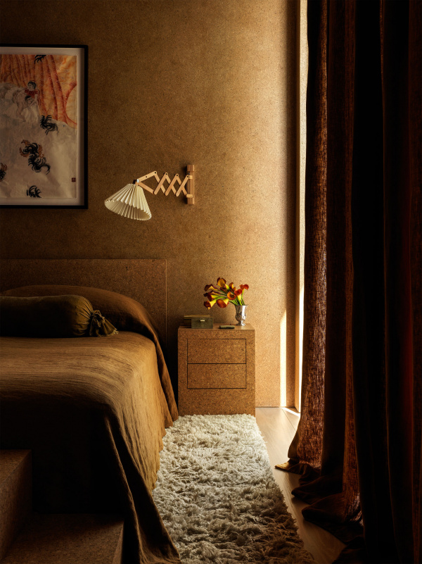 Miami Beach Residence. Cork bed, headboard, nightstand, and dog stairs by Setzler; photo by Chris Mottalini