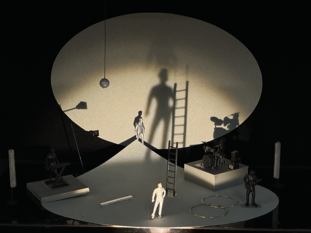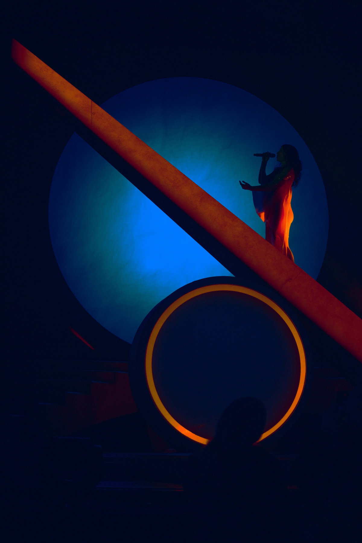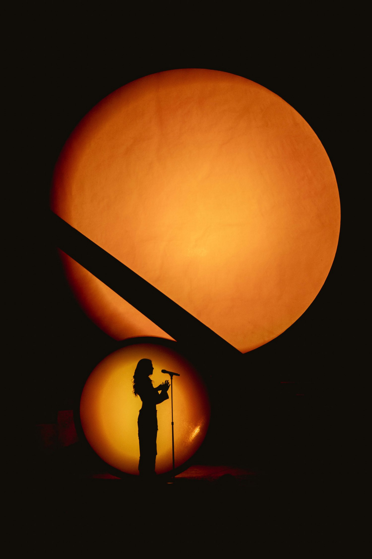 The set’s dramatic rings and floating balloon were inspired by the French photographer Gilbert Garcin’s work that often used paper cutouts and surreal backgrounds. Photo courtesy Chiara Stephenson