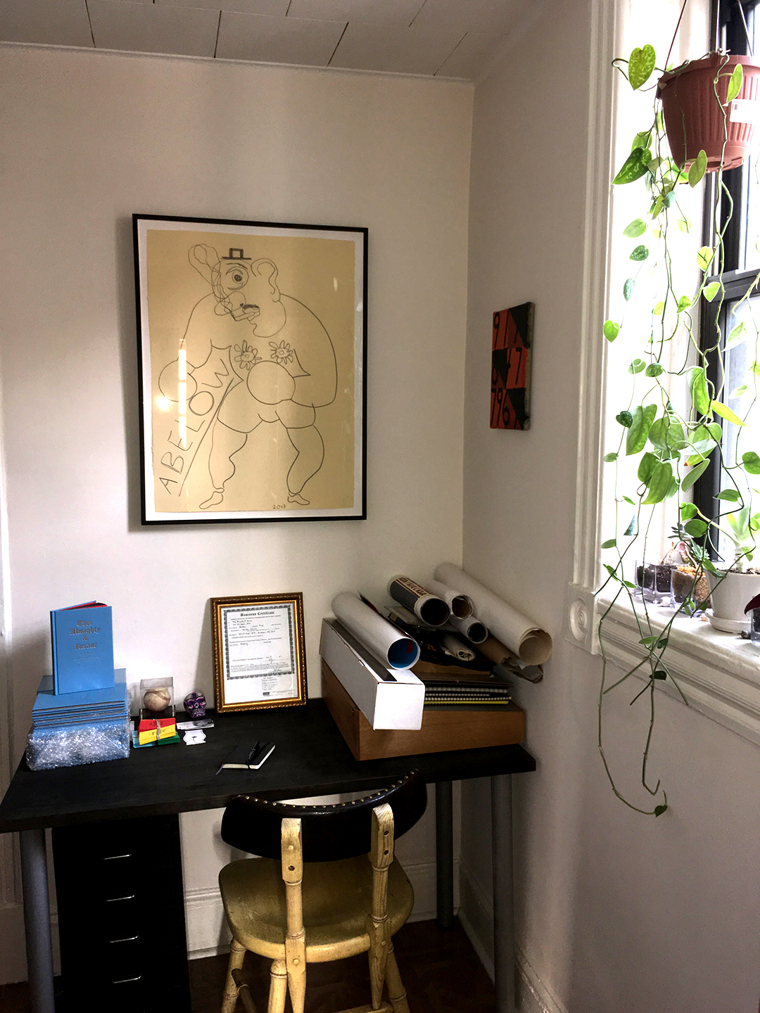Brandon Johnson’s studio desk and workspace.