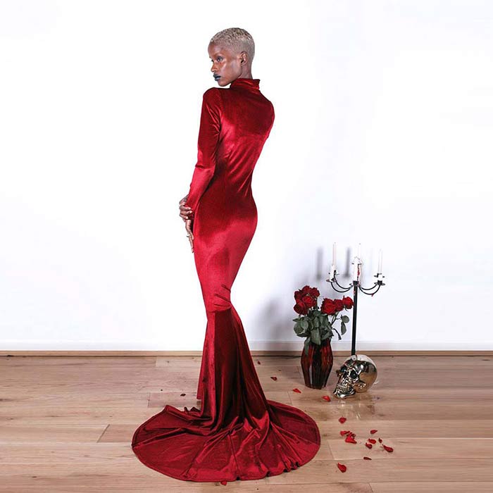 Initially, when I started Church of Sanctus in 2012, I wanted to make gothic clothing that was “fashion” enough to step outside the realm of subculture. My intent was to offer something different from what was available on the high street, but I knew in order to compete with it, the designs still needed to be wearable enough to have longevity in people’s wardrobes. Slow fashion can feel like much more of an investment due to its price point, and I want customers to feel their money has been spent wisely. However, in each collection I do like to make at least one piece where I disregarded all that and just make something that’s really fun to design and to wear, with no other purpose than gothic drama and indulgence.