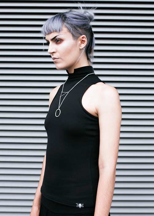 As founder of Church of Sanctus, fashion designer Lucinda Sinclair lives the gospel of goth couture, slow fashion, and ethical design. Sanctus, which Lucinda founded in London in 2012, painstakingly handcrafts all their designs—all of which are cut from vegan-friendly materials and shipped in packaging made from 100% recycled (and recyclable) materials. Furthering the onus on ethics, Lucinda minimizes waste by sourcing roughly three-quarters of her fabrics from dead stock.