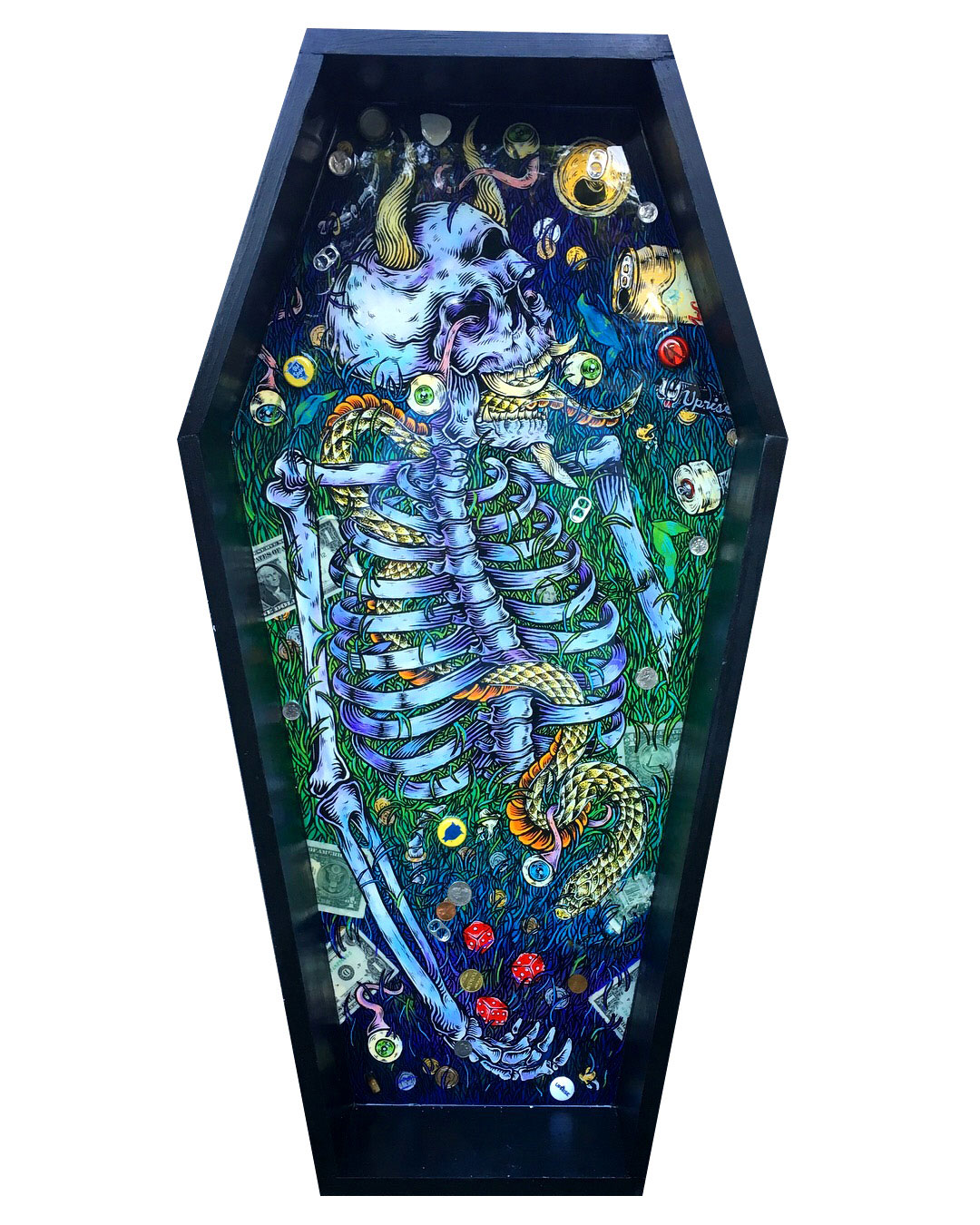 Hand-built coffin painted with acrylic. Made for gettin’ loose and rollin’ dice. BUILT BY ADAM LUNDQUIST.
