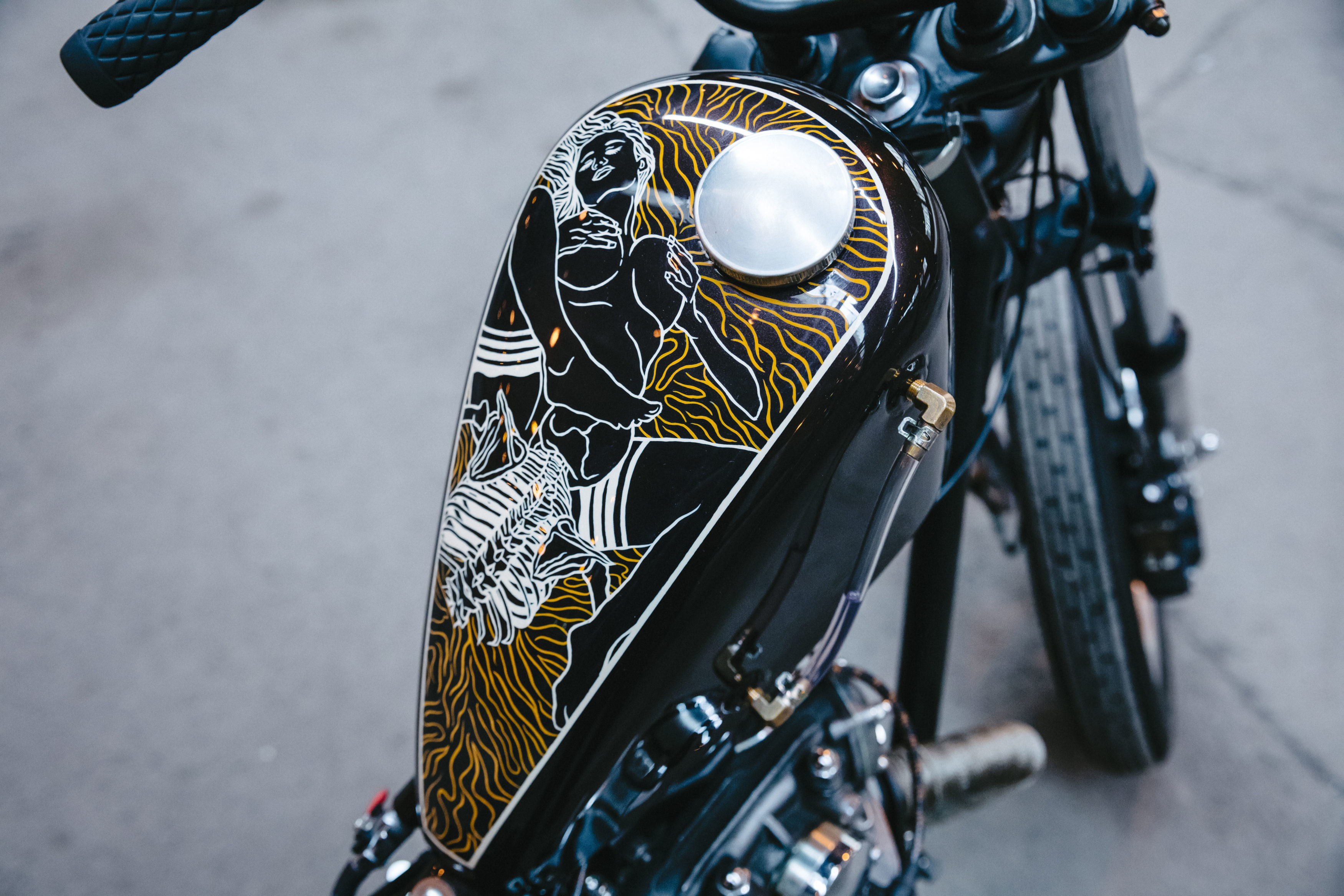 Hand-painted, Frisco Tank detail for the ‘Bottom Feeder Build.’ PHOTOGRAPHY BY MIKE SPIZZIRRI.