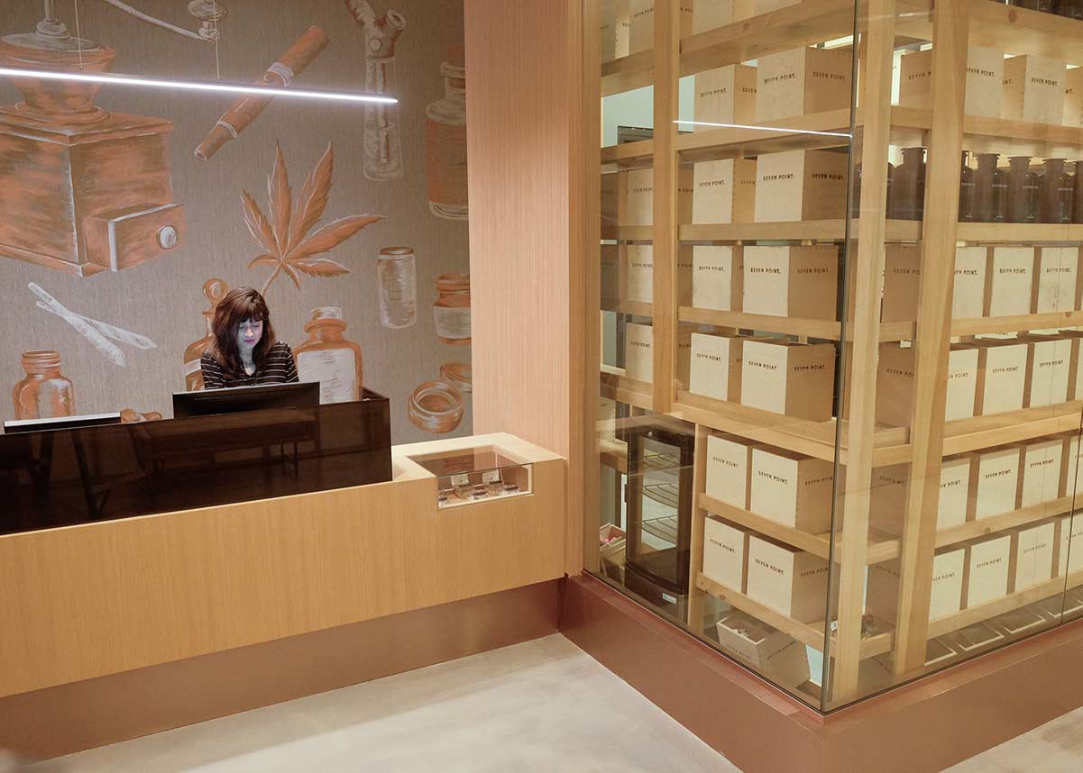 One of the jobs of a good designer is to fight cliché—and few spaces carry as much preconceived baggage as a cannabis dispensary. Nina Grondin, cofounder of Chicago-based hospitality design firm Curioso, knows this firsthand. Her studio sidestepped the hazy, green-neon vibes associated with even medical cannabis shops in developing the high-design space at Seven Point, a dispensary that opened in 2016 in the Chicago suburb of Oak Park.