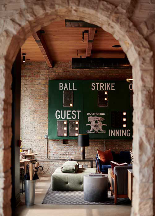 That was really important, that we weren’t designing a baseball hotel, but at the same time you’re literally a block and a half away from Wrigley Field. You can’t ignore the Cubs. So we really tried to create a persona for that property. The first time we toured it, it was pretty much gutted and it felt like somebody’s old home—like a great Chicago greystone house. We wanted it to feel intimate, like you were staying with a friend rather than staying in a hotel, because it does feel like a house. So we thought, what type of person would live a block from Wrigley?