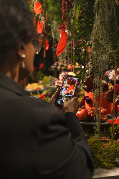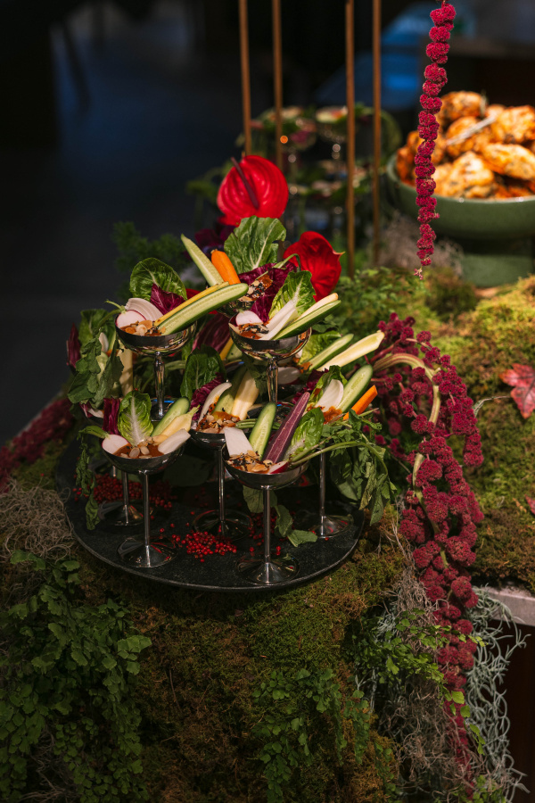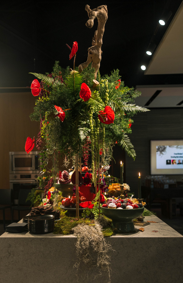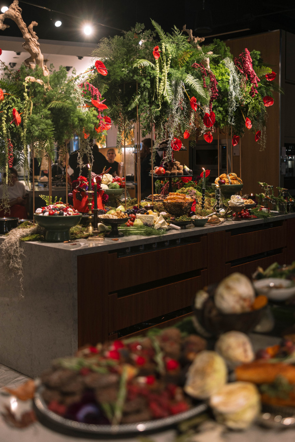 Lighting, floral arrangements, and the subtle aroma of Palo Santo sticks were additional elements that transformed the showroom, creating warmth and intimacy. Food presentation took center stage, too. Panelists felt the curated grazing table offered an informal yet luxurious dining experience, moving away from traditional catering.
