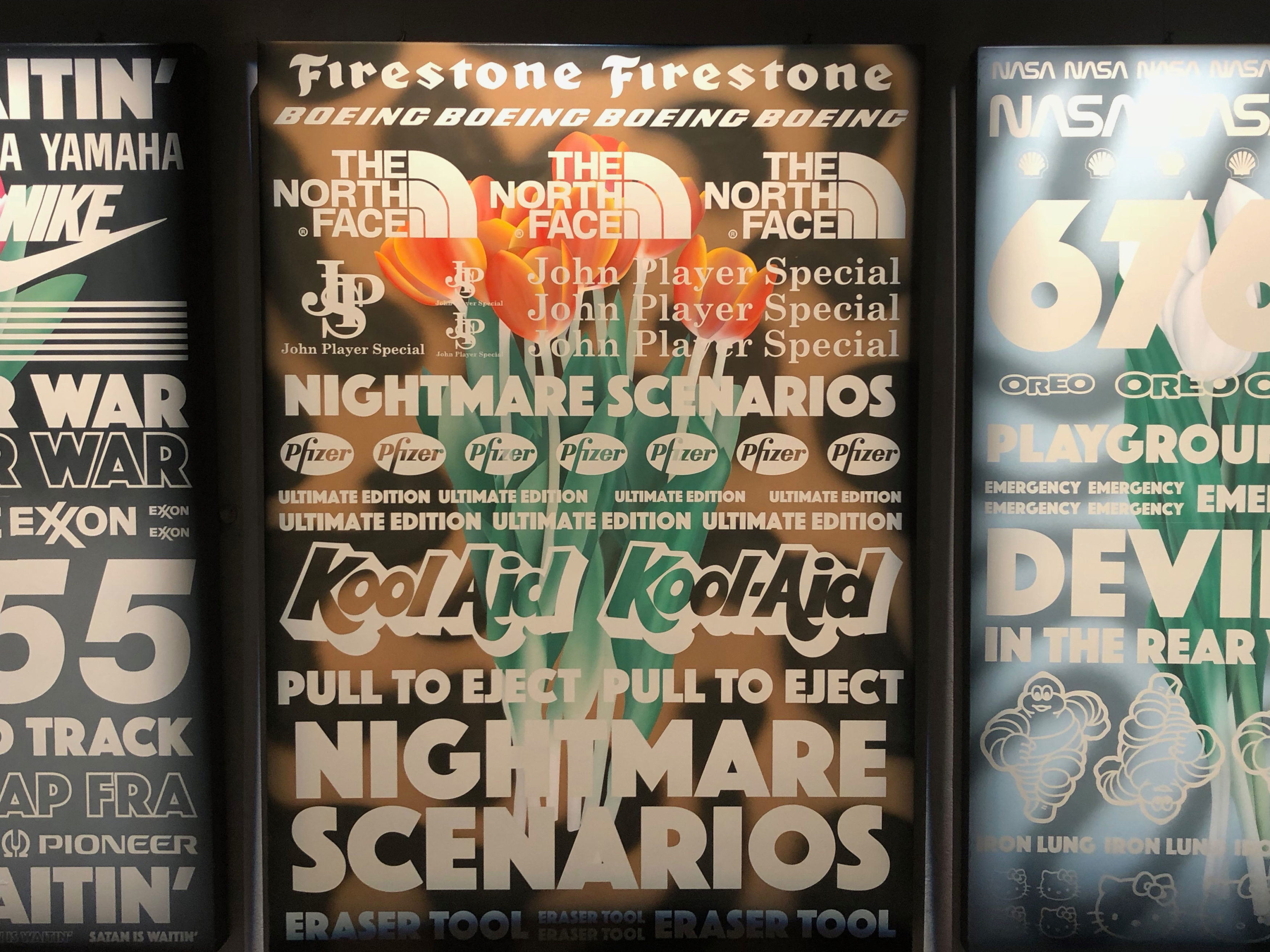 His work reflects this—jagged, bright, with heavy motorsport overtones. Back then, a driver’s helmet made a simple statement. “The cars made a statement, the drivers made a statement, and it looked like the most fun ever.”