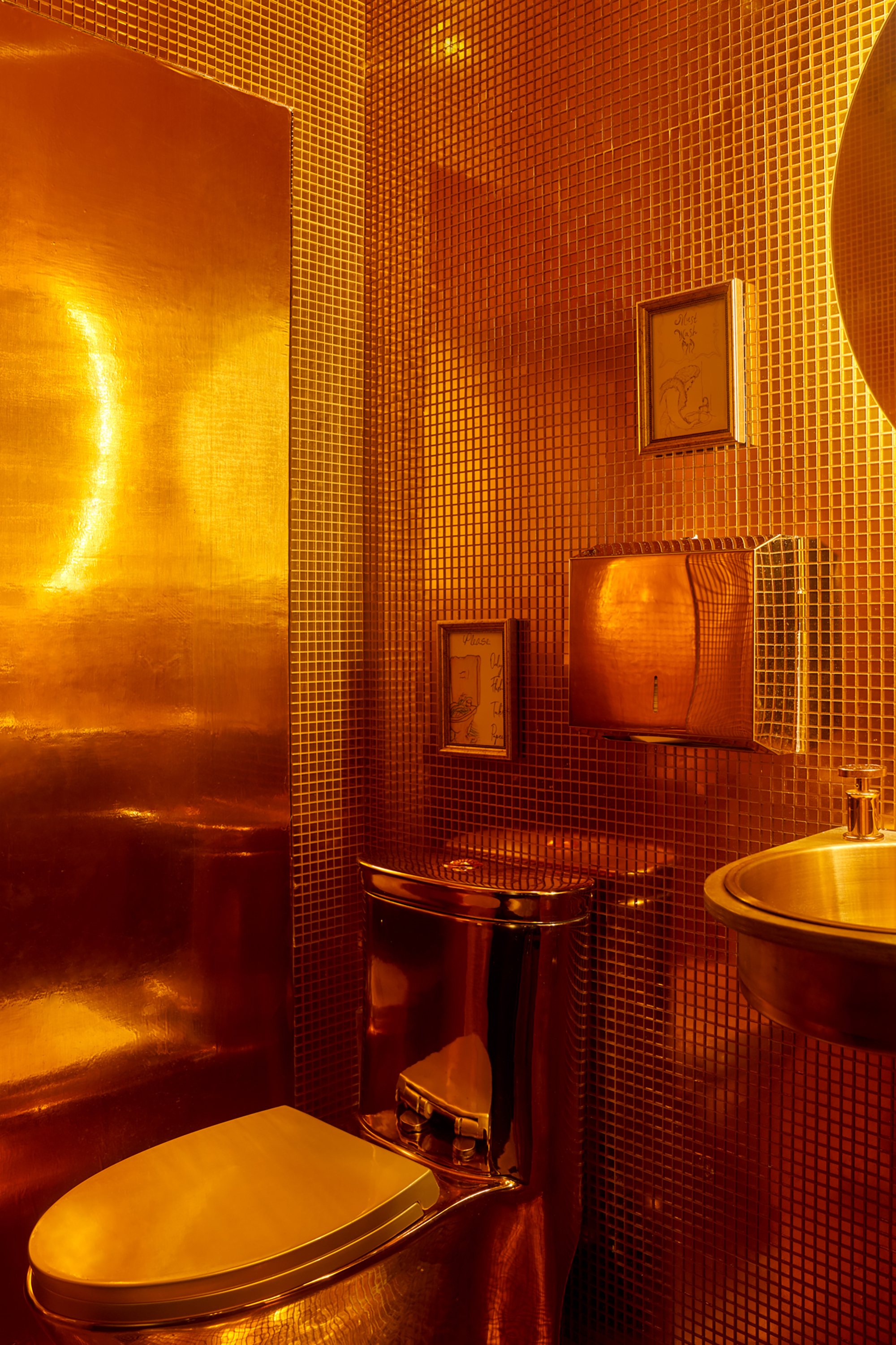 - Ella Funt’s gilded bathroom. Photo by Seth Caplan