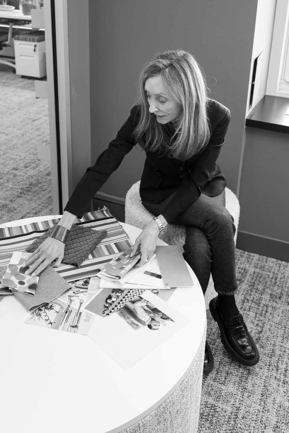 I think about color a lot too in these types of projects. For the Frattini collection, it took years to develop a day-glow yarn with the strength we wanted as an accent in textiles. For textile work, color is extremely important. Whether you work on texture to develop solids—texture reflects color in a certain way, so you adjust—or patterns, you consider how many colors affect cost, how many colorways in a collection, how to group them.