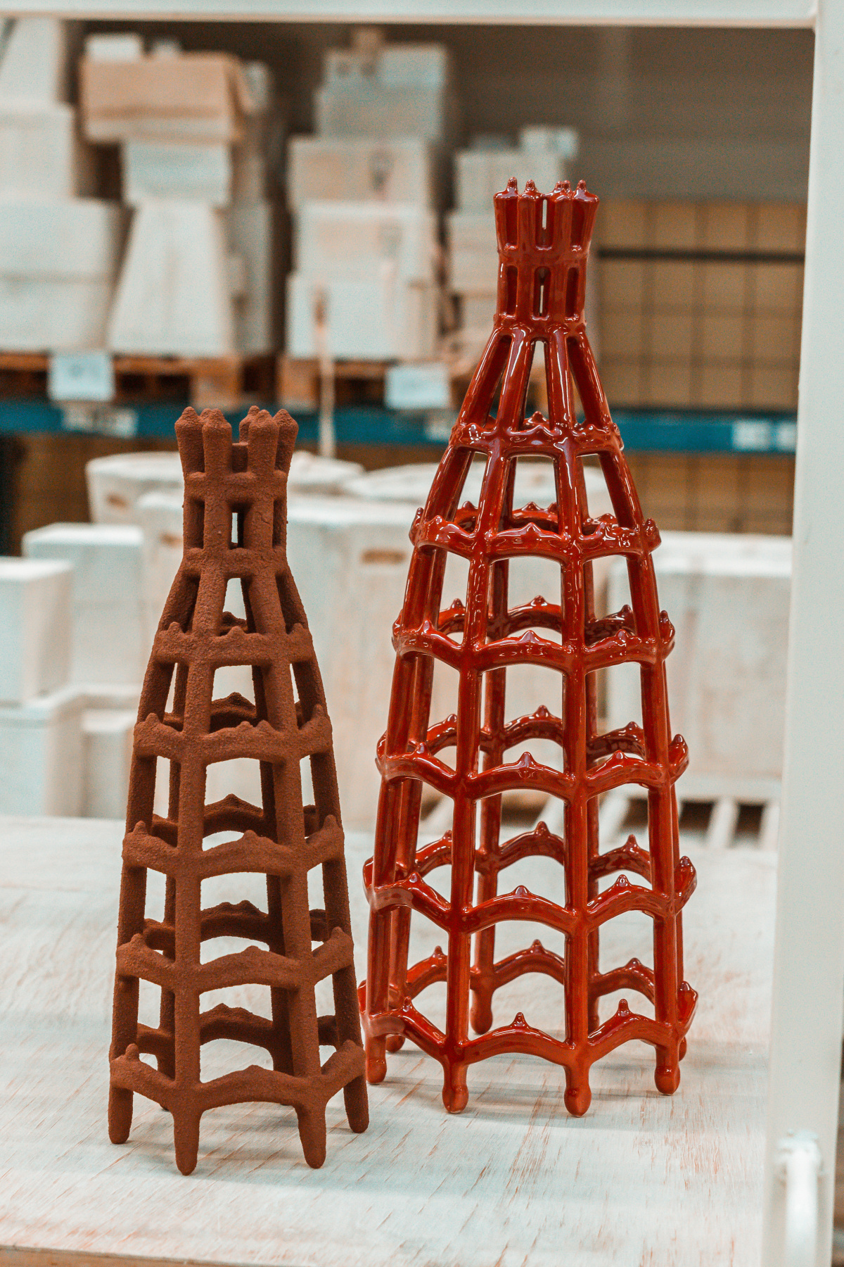 “We let gravity create the final product,” Ruben Hoogvliet says. He and Gijs Wouters are Atelier FIG. The project that earned them the Rising Talent Award this year is the Gravity Collection, in which they rethink ceramic crafts through experimentation with liquid clay allowed to dry in whatever form gravity directs. Atelier FIG began with moisture absorbing, frame-like structures dipped in liquid clay. The weight of the clay softens and deforms the structures, making the outcome unpredictable. In experimenting with craft and natural forces, Atelier FIG deepens the dialogue between materials and physical forces that determine their final form.