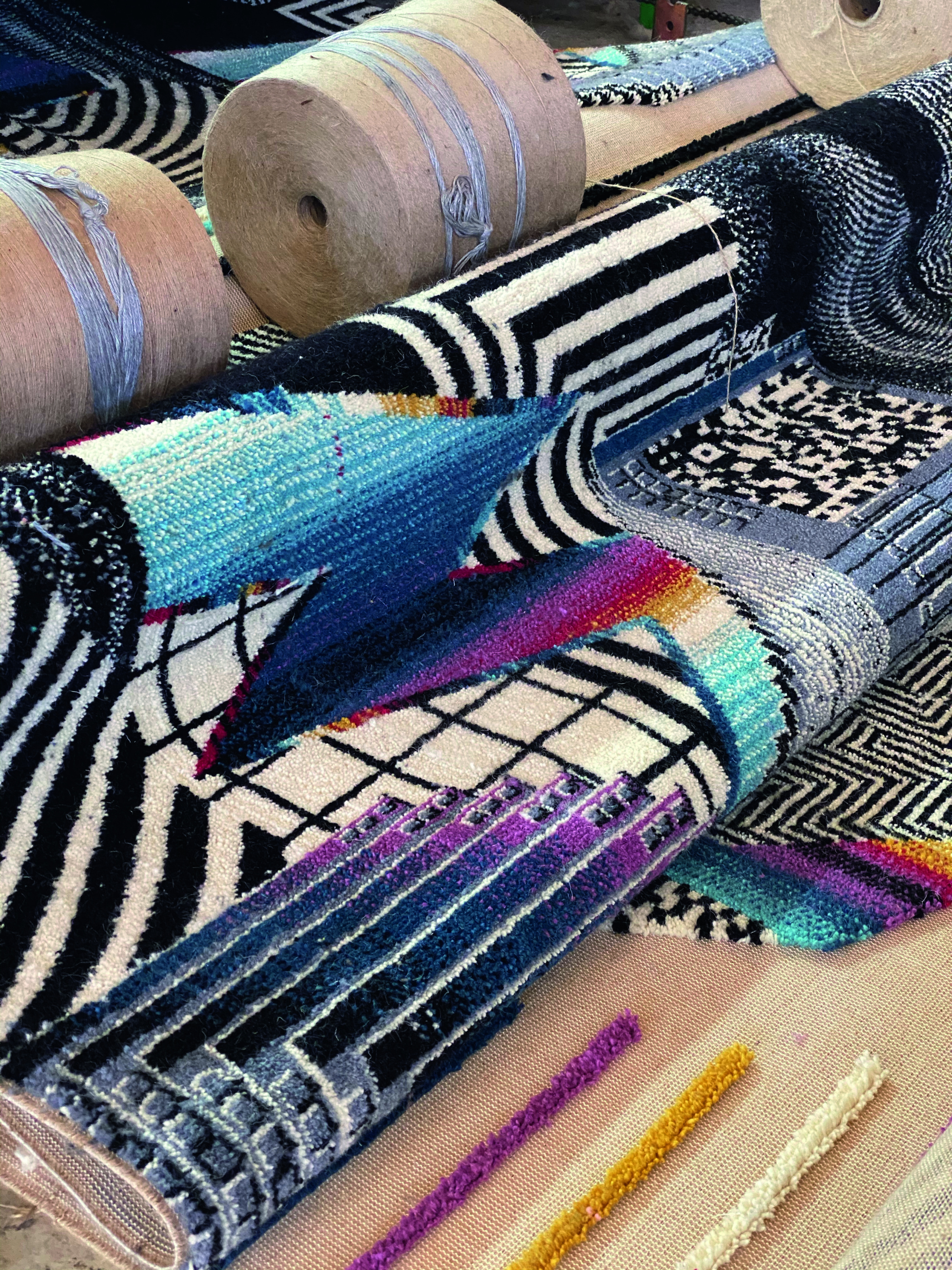 - Felipe’s vibrant designs in collaboration with Trinidad Rugs. Courtesy of Felipe Pantone Studio