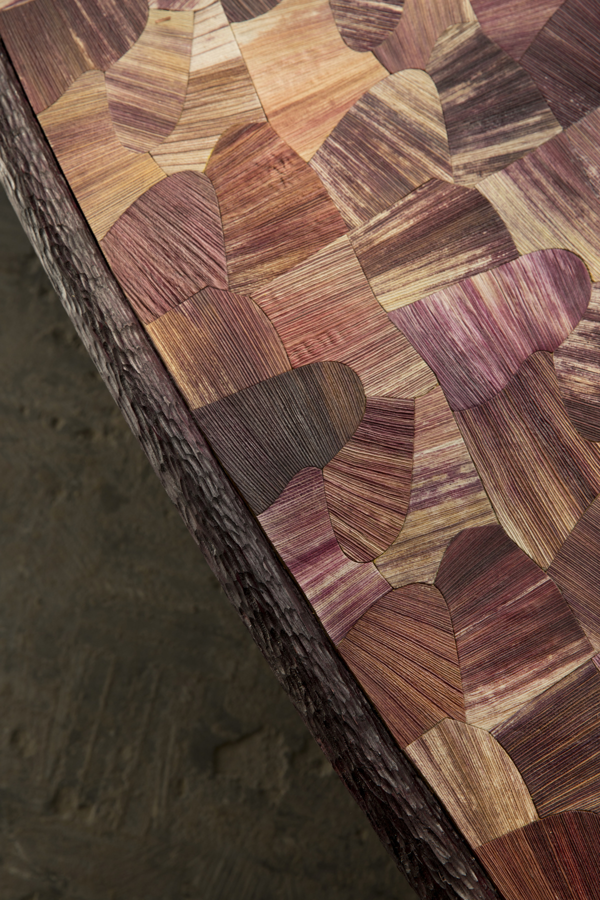 For Fernando’s Totomoxtle furniture, each husk is carefully cut and peeled off the cob, ironed flat and glued onto a paper pulp or textile backing. At this point the material is ready to be cut by hand or laser into small pieces that are reassembled to make marquetry for furniture or interior surfaces. Photo by Fernando Laposse