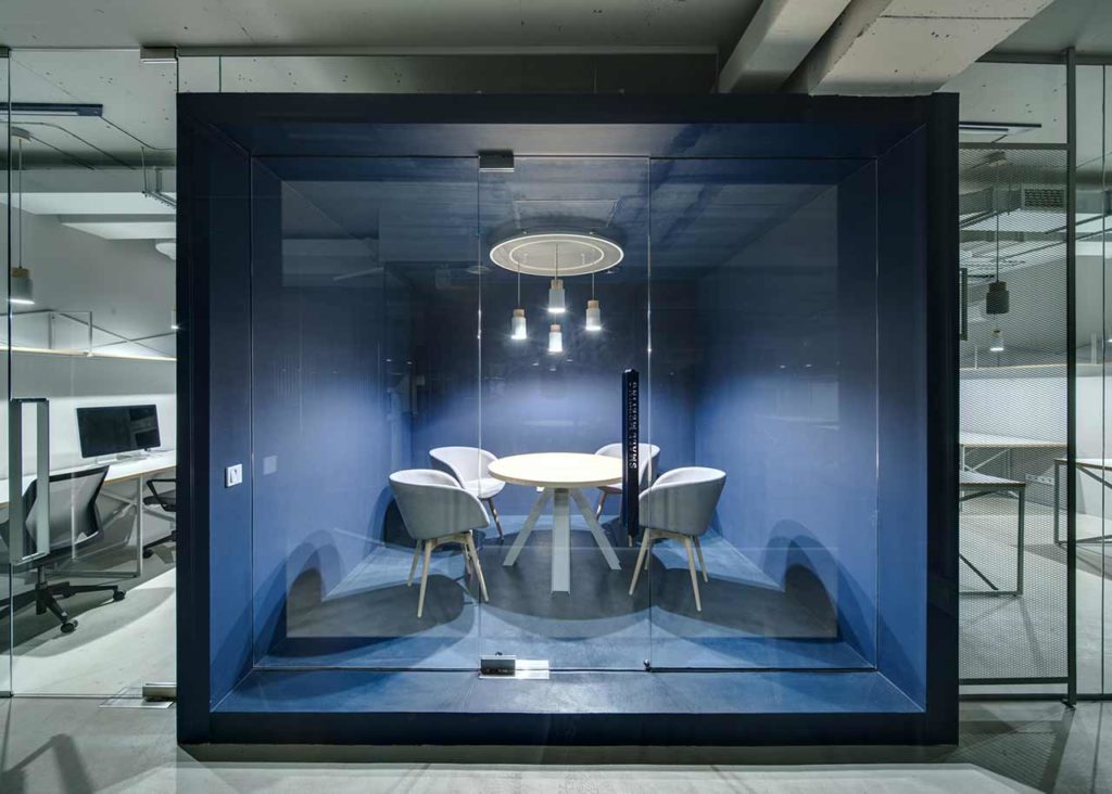A workspace in the CMS Group headquarters, for which FILD designed the interiors.
