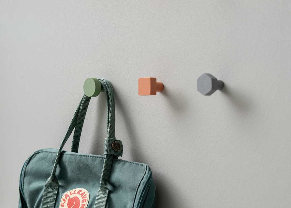 FILD’s wall-mounted Geometry Hooks are crafted from powder-coated steel and made in seven different colors.