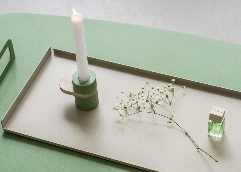 FILD’s Tom Tray. It was also produced in forest green, along with Corner lights, Geometry Hooks, and other designs, for the 2019 Stockholm Furniture and Light Fair.