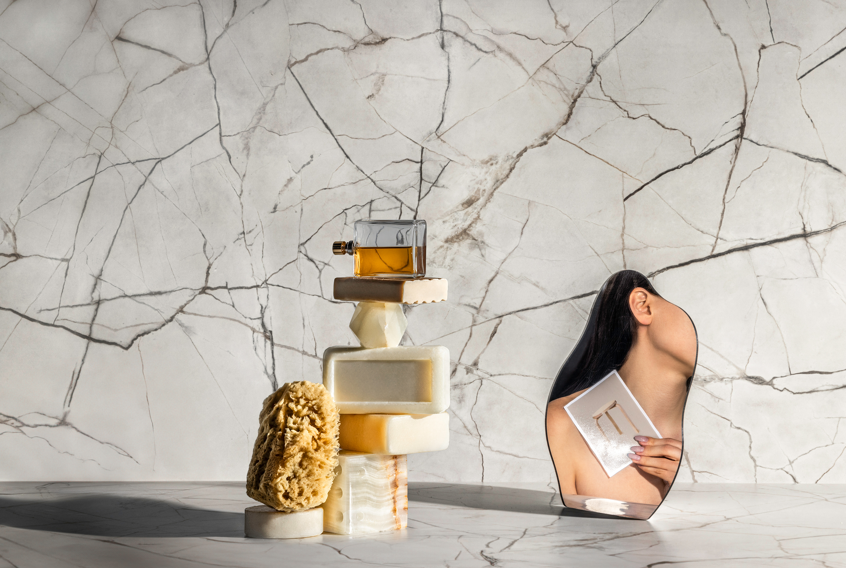 Inspired by the timeless simplicity of Alvar Aalto’s Stool 60, our minimal bathroom features the understated elegance of Fractured Marble by Formica Corporation. It’s a tribute to natural beauty, creating a serene retreat that soothes and inspires.