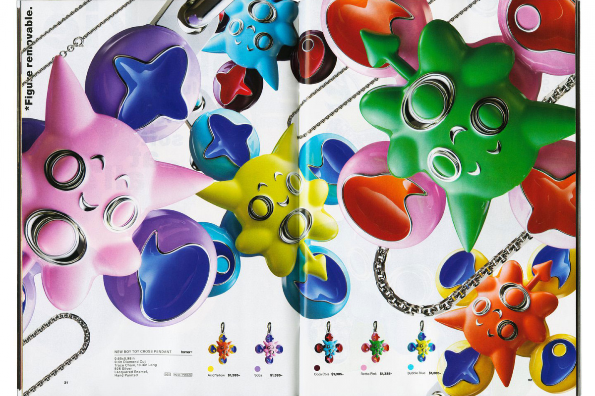 + Distinguished by bright colors, chunky shapes, and character-driven designs, Homer is reminiscent of Takashi Murakami and Y2K graphic appeal. The inaugural collection is compiled into an 84-page catalog shot by Tyrone Lebon, photographer and director of Frank’s “Nikes” music video.