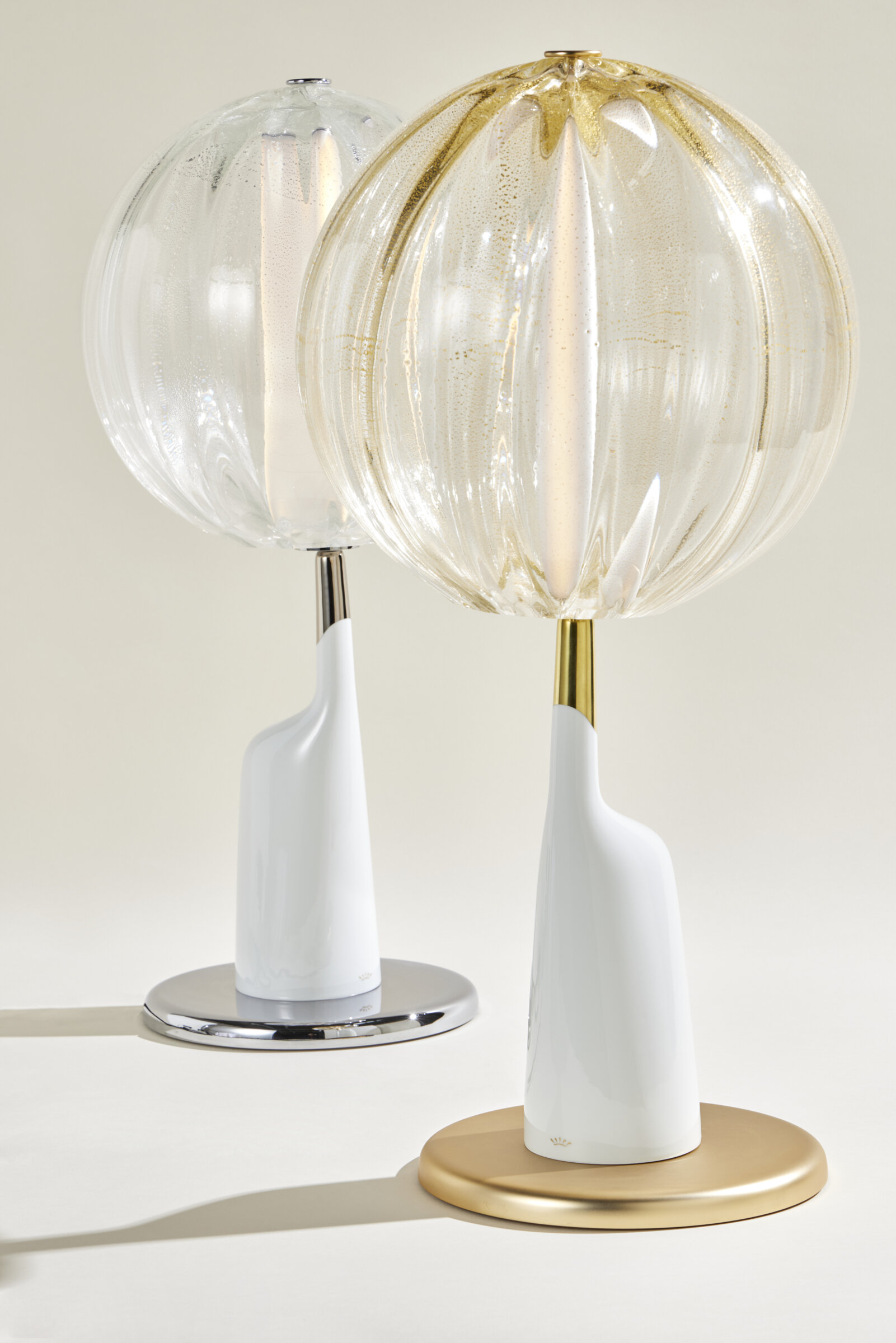 - Barovier & Toso’s hand blown glass tops the Sideris table lamp.