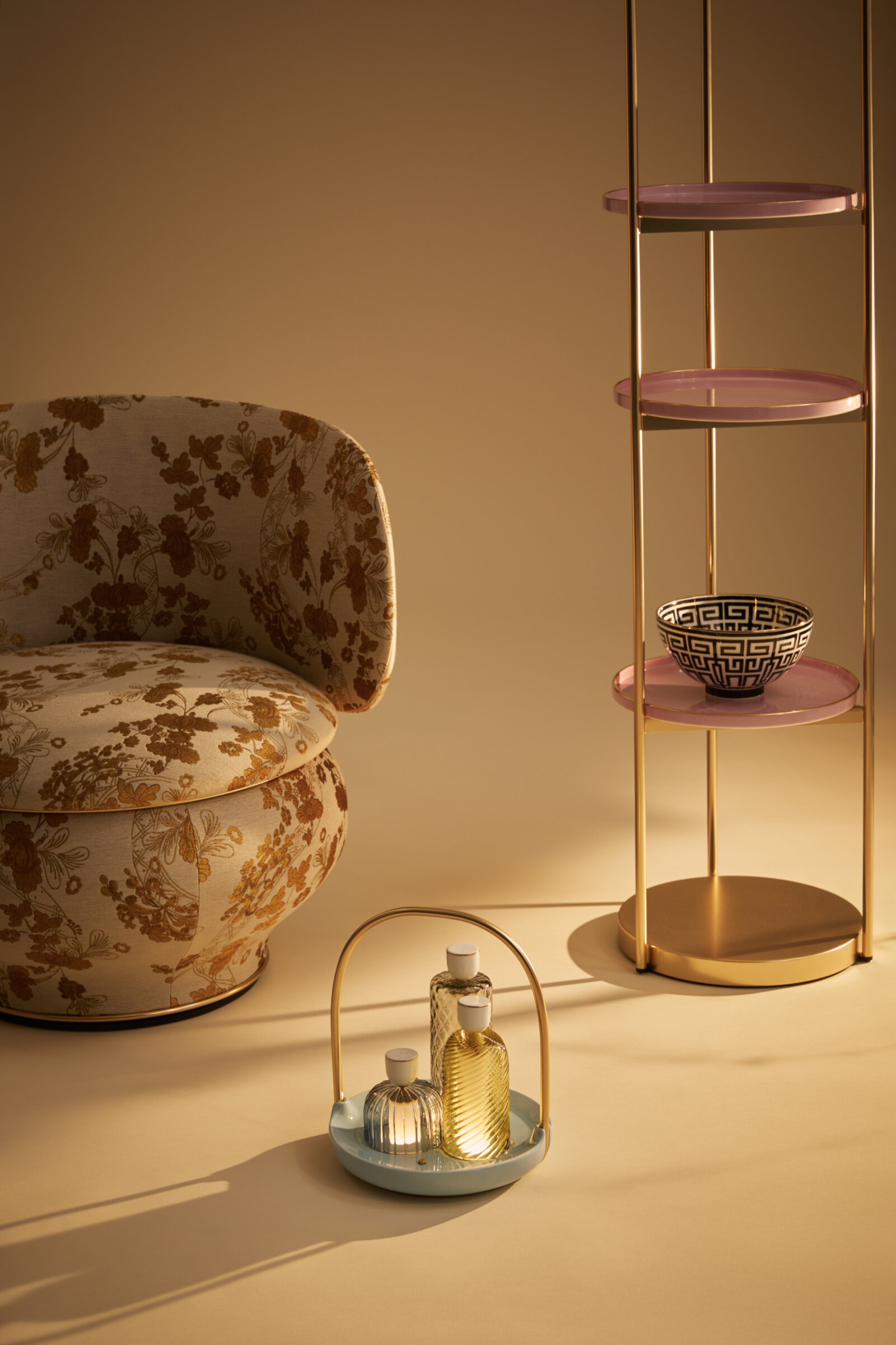 Luca’s carefully researched Domus collection does an excellent job of transforming nearly three centuries of Ginori 1735 porcelain into home furnishings. By bringing in the craftsmanship from Italian stalwarts Barovier & Toso and Rubelli, he’s created a collection of one of a kind, heritage pieces that still embrace contemporary trends like gold trim, terrazzo pattern, and bold fabric.