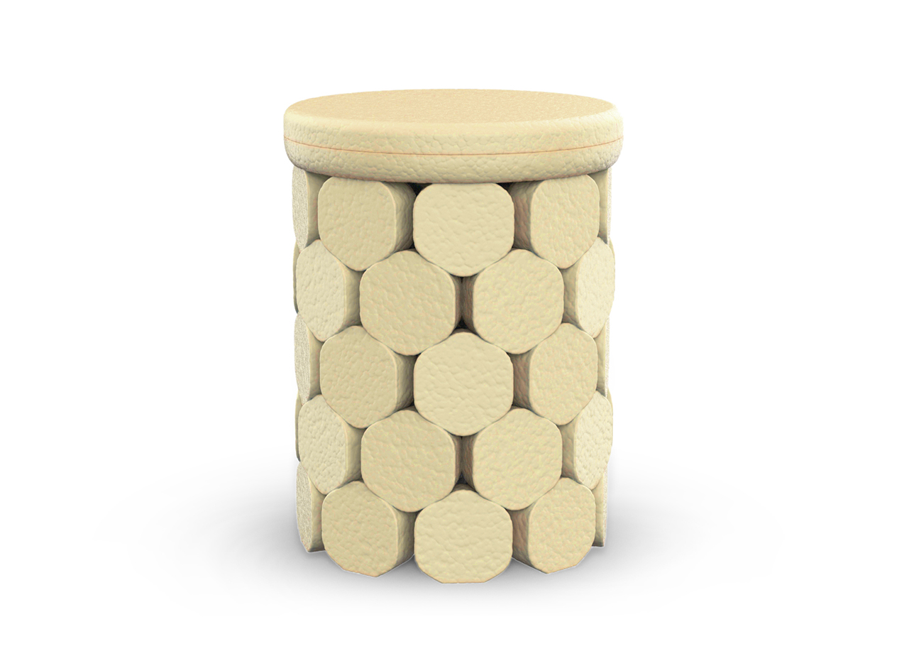 The second stool (pictured above), designed by Sergio Silva, exemplifies circular-economy design, using mostly UBQ Materials from non-recyclable municipal waste.