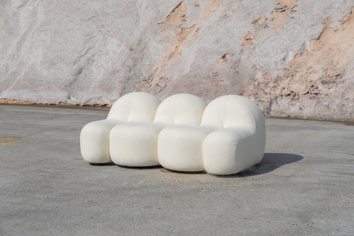 Designer John Vieweg began with a large block of foam then cut away with a hot knife until the Glove couch appeared. “The Relief collection is about carving away at materials. By softening hard edges, we discover the human qualities within,” he says. thehighkey.design
