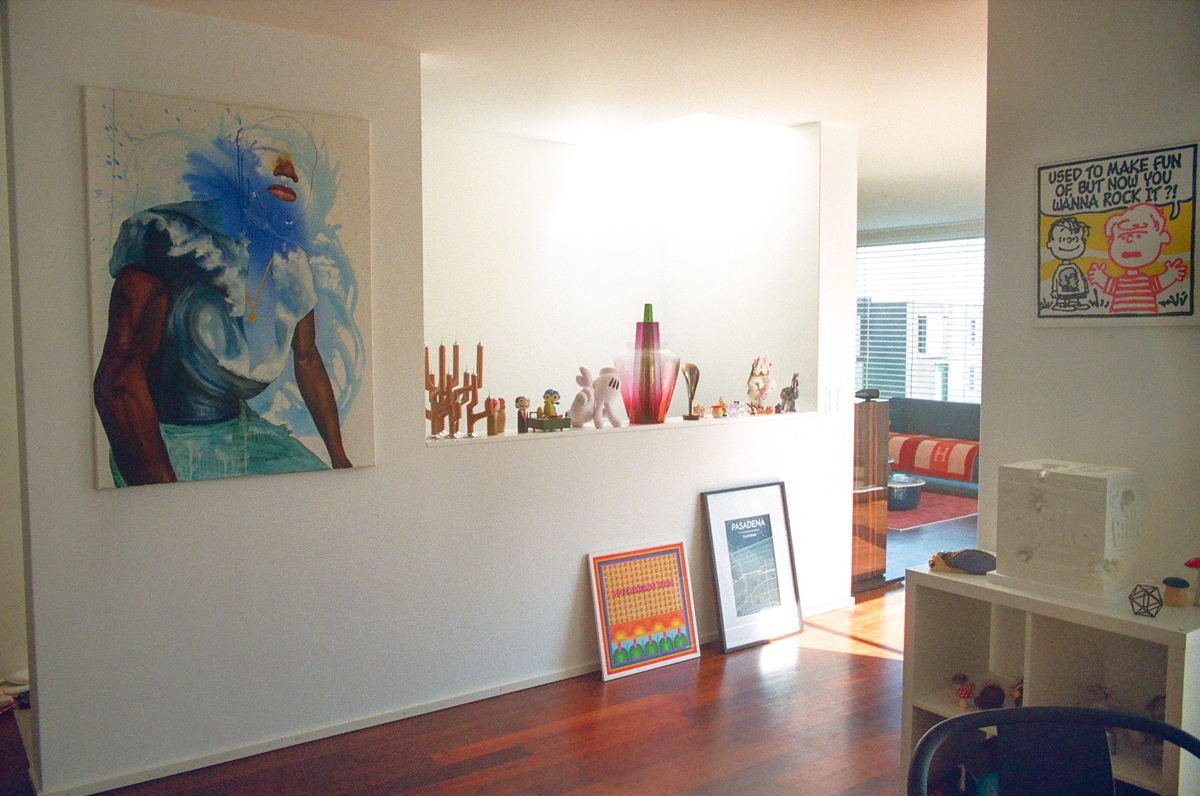 - A sleepy Snoopy print from Ini’s friend, designer and artist Hassan Rahim, hangs on the wall. Photo by Drapeaunoir